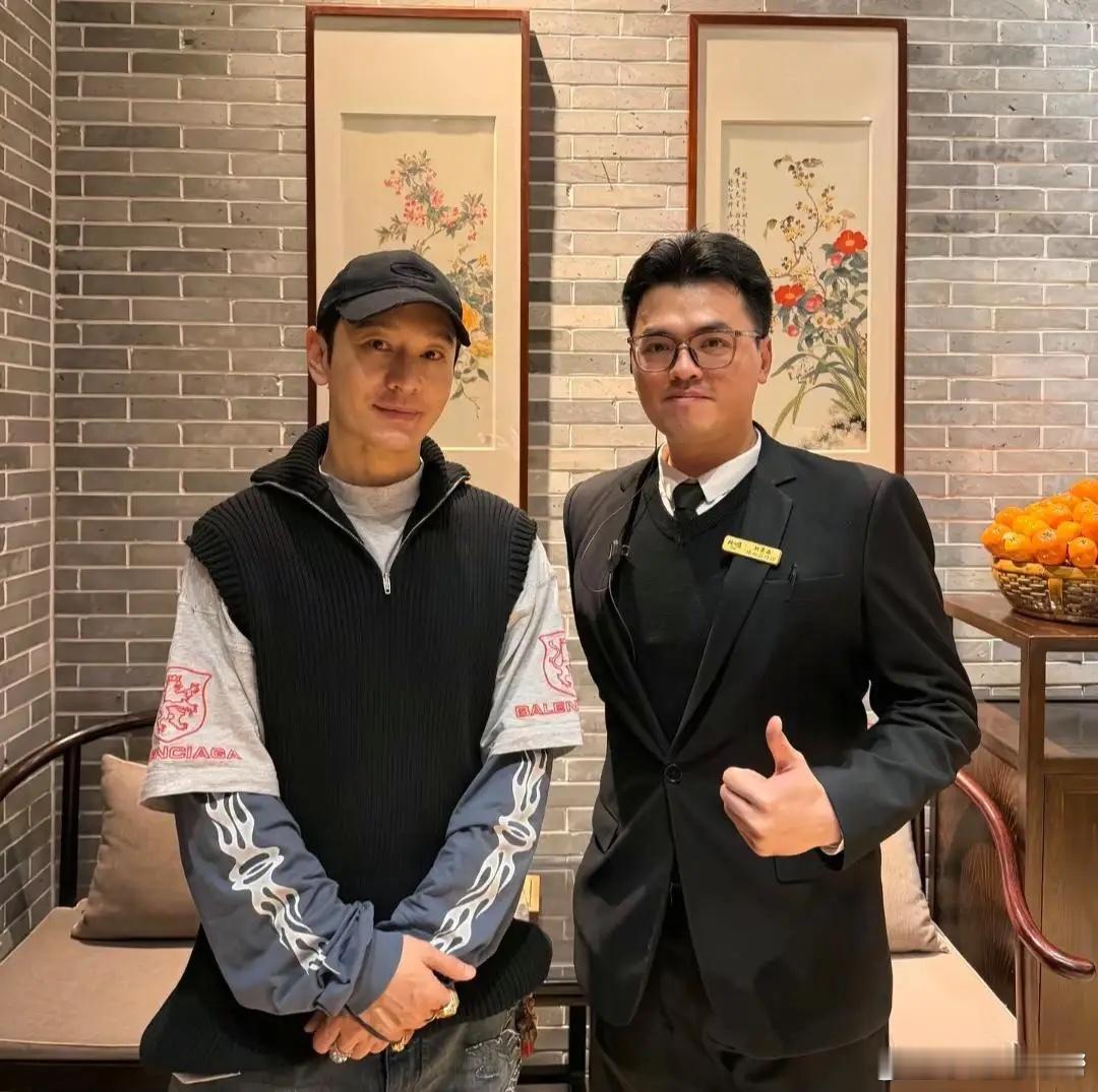 50岁黄晓明现身广东顺德一家餐馆吃饭,他头戴鸭舌帽,他的穿衣装扮时尚有型,皮肤紧致,脸部素颜皮肤很好,身材高挑,外表看起来好年轻啊!