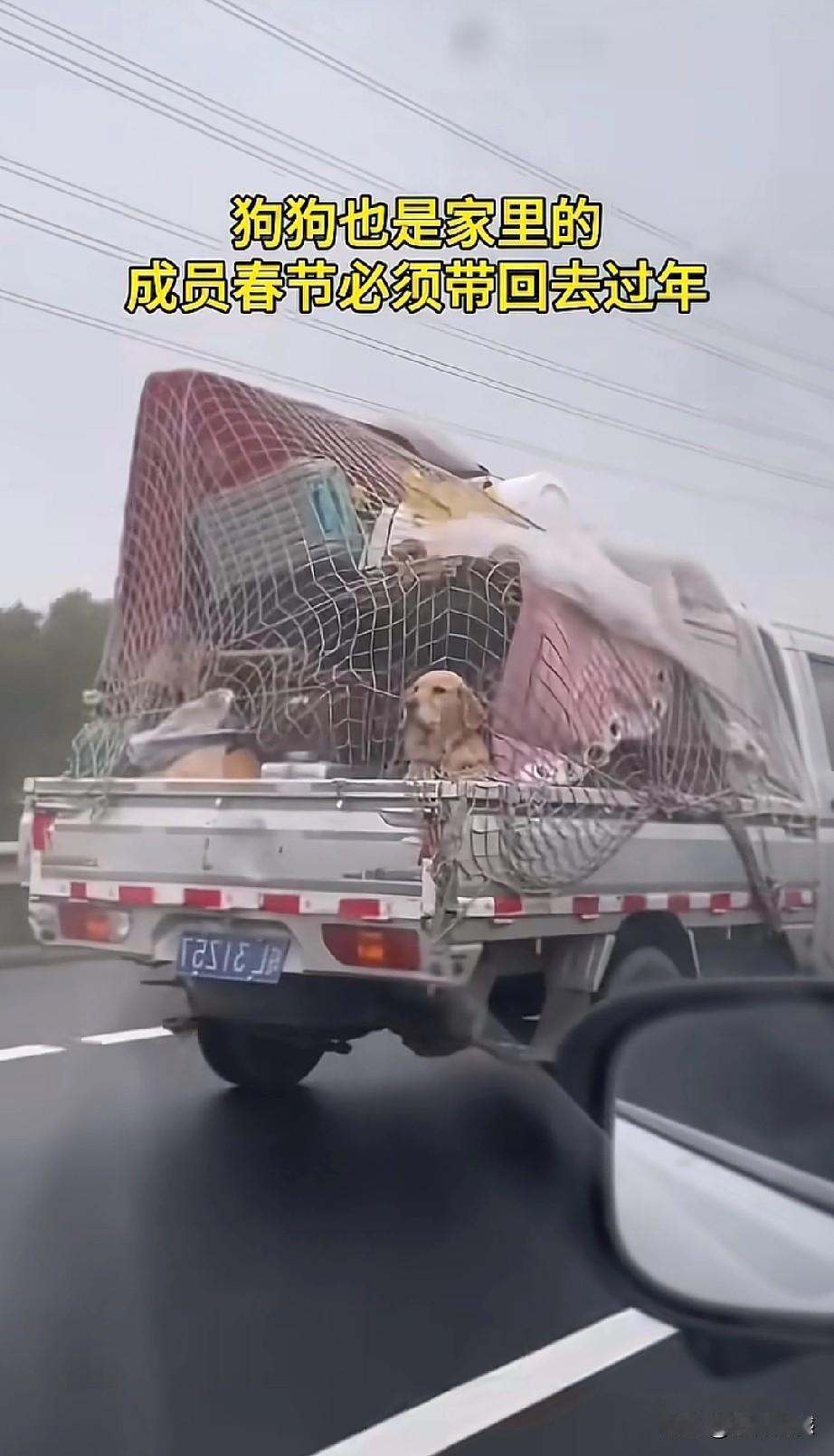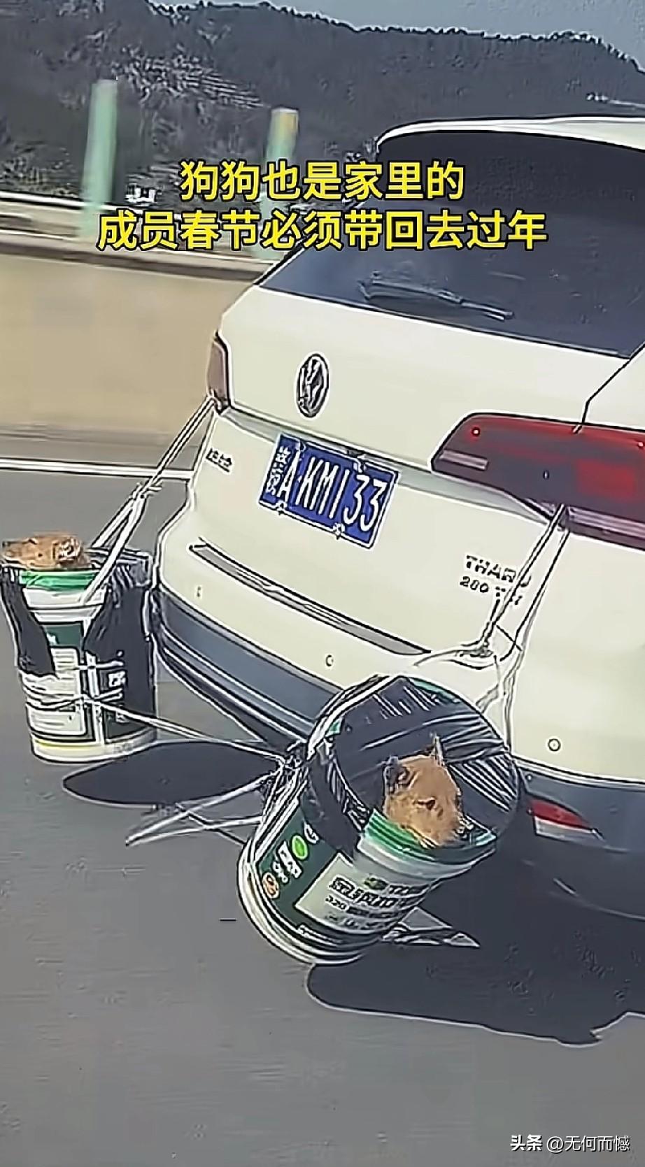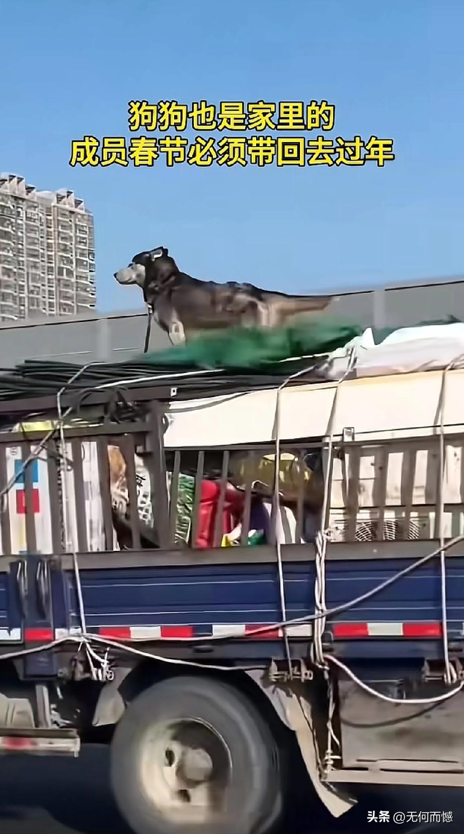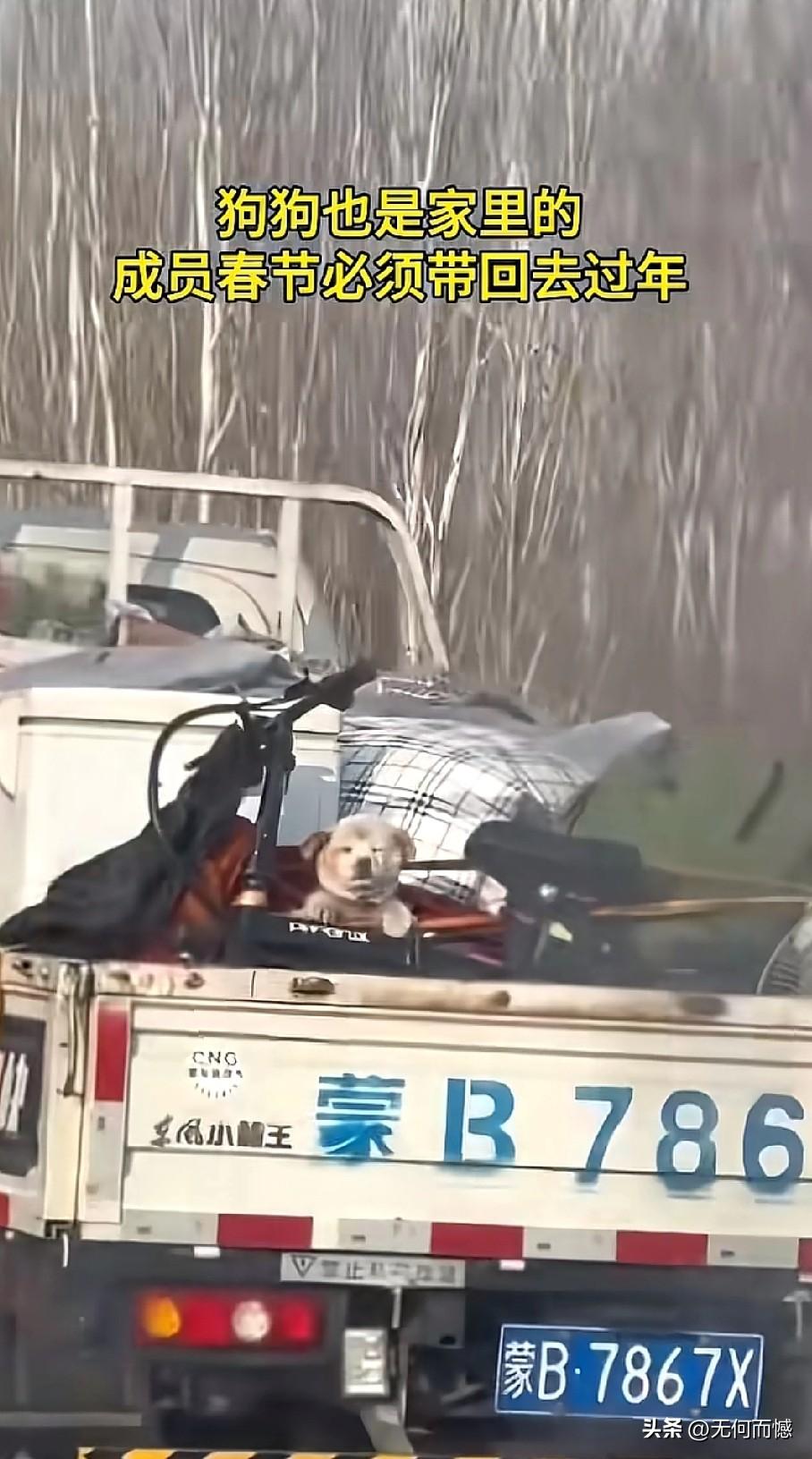 看到这些开车带着毛孩子回家过春节的人,让人非常的感动,感受到这些人是非常善良的,回家过春节,并没有扔下毛孩子不管,这才是合格的狗主人应该做出来的行为,尽管这些人没有把狗放在车里,有的挂在车外面,有的在放在车顶上,如果路途远、气温低的话,毛孩子不仅遭罪,而且也存在着安全隐患,考虑到车上也许已经坐满了人,这么做也是无可奈何之举,总比那些自己回家过春节,却把狗卖给狗肉馆、或是吃掉或是抛弃了的人要强百倍!