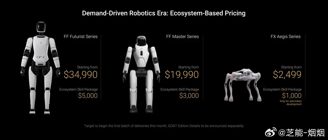 Futurist系列机器人起售价34990美元(现汇率约合24.3万元人民币),Master系列机器人起售价19990美元(现汇率约合13.9万元人民币),Aegis系列机器人起售价2499美元(现汇率约合1.73万元人民币)。