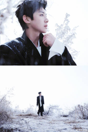 白敬亭微博之夜出发图,是在吉林拍的吗,好有意境,雾凇与帅哥