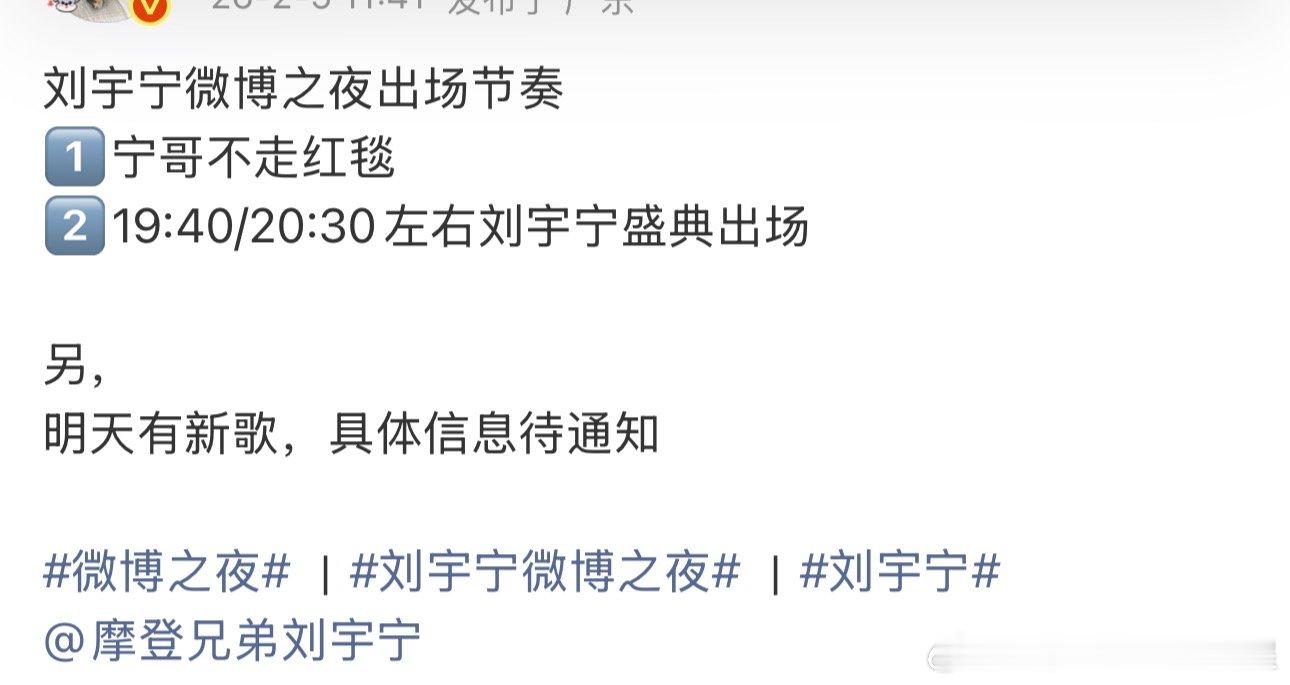 刘宇宁出场节奏刘宇宁微博之夜出场节奏宁哥不走红毯19:40/20:30左右刘宇宁