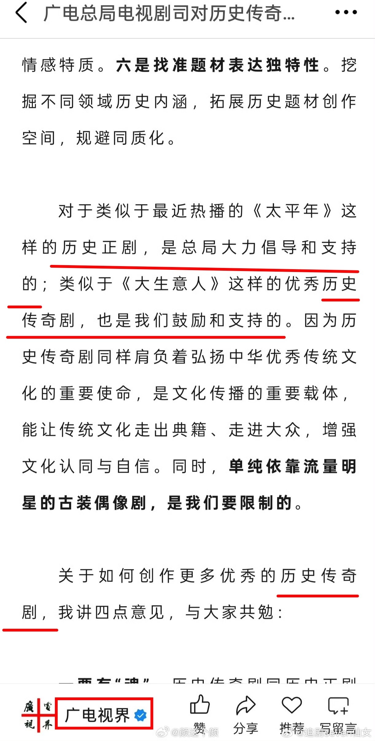 划重点,广电要大力倡导和支持历史正剧和历史传奇剧,限制单纯依靠流量的古偶。长剧需要更精品内涵更丰富一些,不是人人都能拍的了历史剧。在拍历史传奇剧,和未来待拍历史剧,期待下