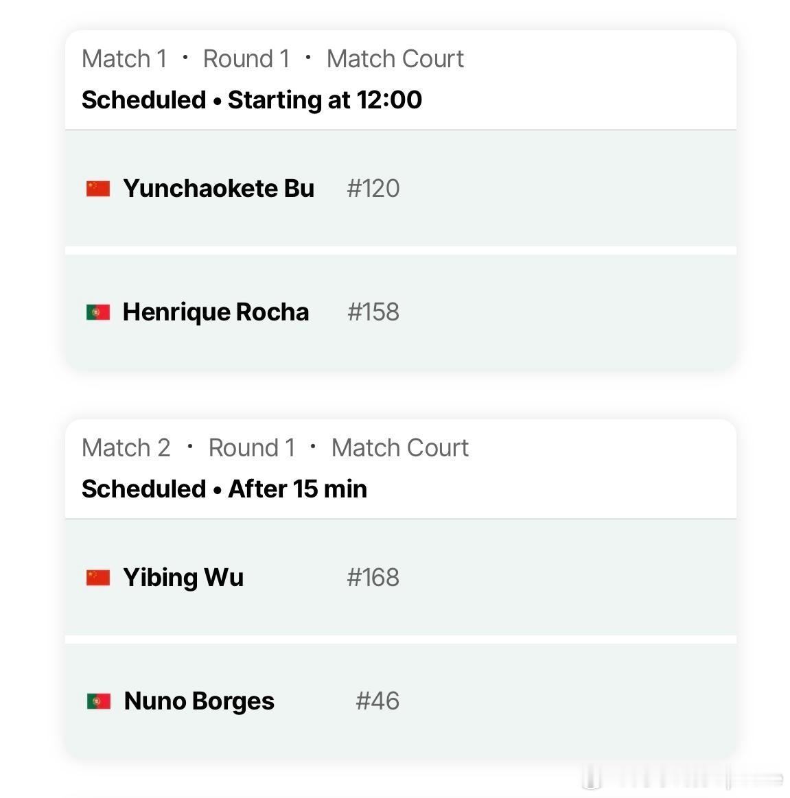 🇨🇳布云朝克特 vs 博杰斯🇵🇹🇨🇳吴易昺 vs 罗沙🇵🇹