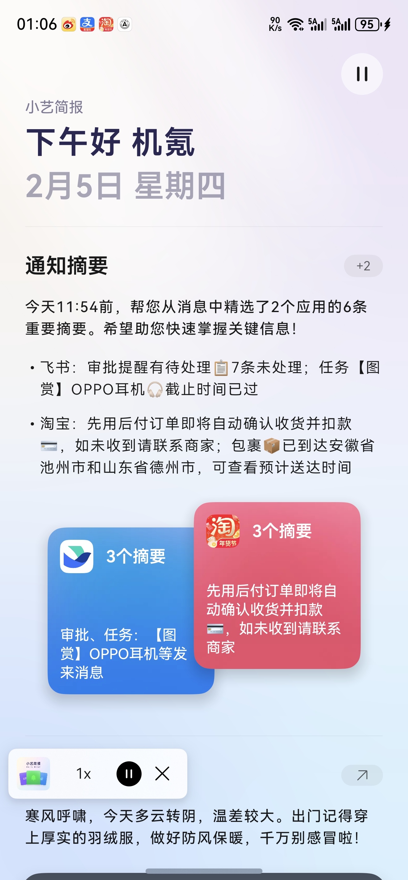 鸿蒙6的小艺简报 我一直有看对于日常生活还挺管用总结一些待办事项 还有快递回忆点儿过去 还有新闻时事类似于个人助理 还可以给你念出来开车的时候安安静静听就可以了自己总结 自己说 不用自己动手这个才像当下时代的手机助理