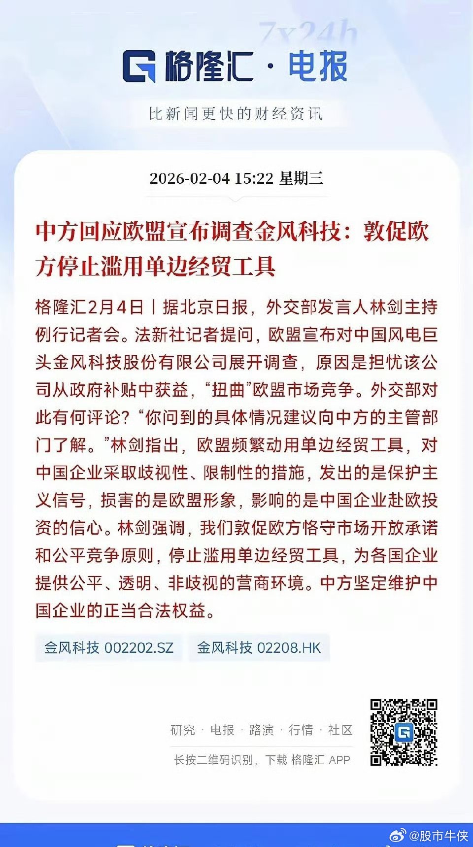 商业航天在A股收盘爆出利空消息,金风科技成为被调查对象金风科技曾经凭借子公司持有蓝箭科技的股份得到过市场的大幅资金流入,也带动了航天军工概念的上涨。不过今天A股收盘后爆出金风科技被欧盟调查的消息,原因还是那么的随心所欲:就是担忧公司会让公司受益,对欧洲相应的公司不利。在消息爆出后A股已经收盘,但是港股金风科技出现了直线下跌,最终收盘大跌6.78%。这种消息面的影响肯定还延续到明天的A股,作为航天军工的相关公司,也会对板块造成影响。