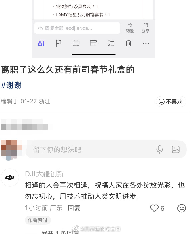 大疆官方回应前员工获春节礼盒