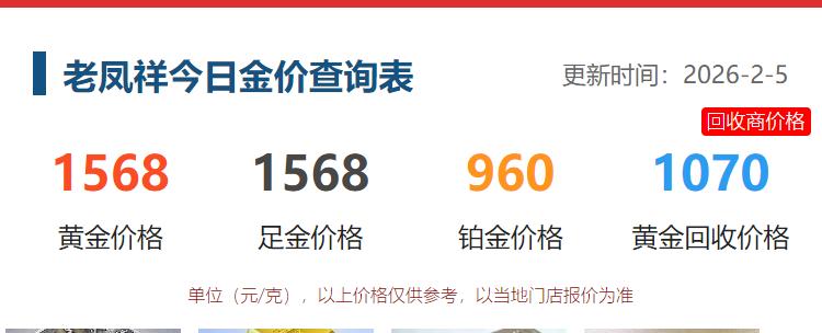 今天国内商场里面 品牌黄金价格齐刷刷回落。 以上海为发展起来的老凤祥, 2月5日,黄金价格为1568元, 较上一日回落8元; 铂金价格为960元; 黄金的回收价格为1070元。 您觉得这个价格如何? 会进行购买还是观望? 【周大金】 新中式古法传承素圈手镯女金色镯子
