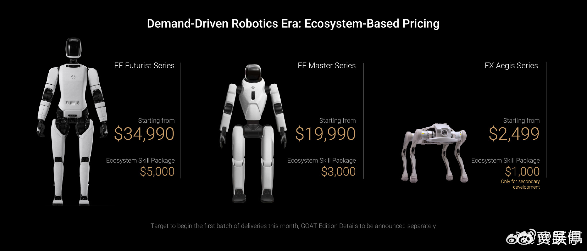 Futurist系列:全尺寸职业型,34990美元起;Master系列:运动型,19990美元起;Aegis系列:安防和陪伴型,2499美元起。