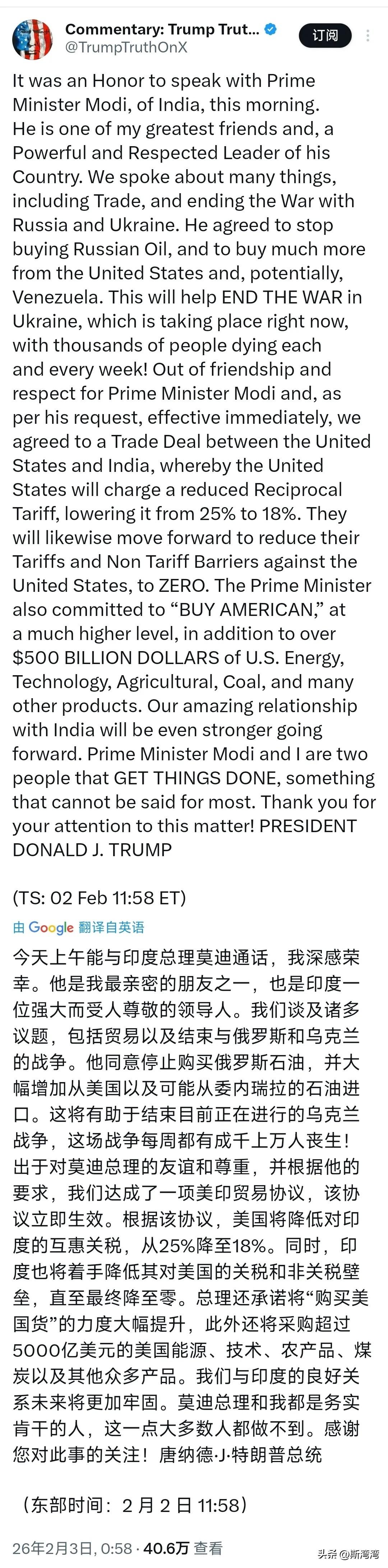 特朗普表演真的是一流的! 为了打压中国和欧盟,特朗普也真的豁出去了。一直不受特朗普待见不正眼相看的印度总理莫迪居然此次得到了特朗普史无前例的猛夸,不得不说,特朗普虚伪和表演到了极致,当然莫迪的表演也是一流的! 新锐领航权益升级