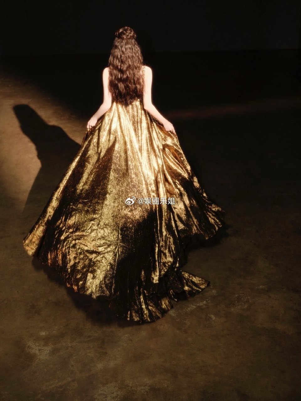 一身Tony Ward 2017春夏高定鎏金短裙,亮面材质在灯光下流光溢彩,吊带设计完美展露肩颈线条,高开叉裙摆每走一步都自带气场,逆天长腿真的让人移不开眼!