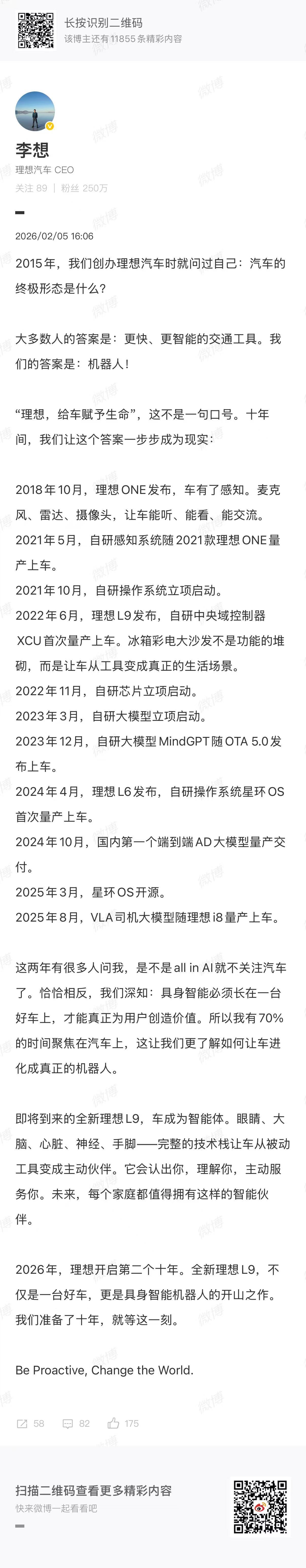 今天的重磅新车资讯+1,来自李想预热全新理想L9 !