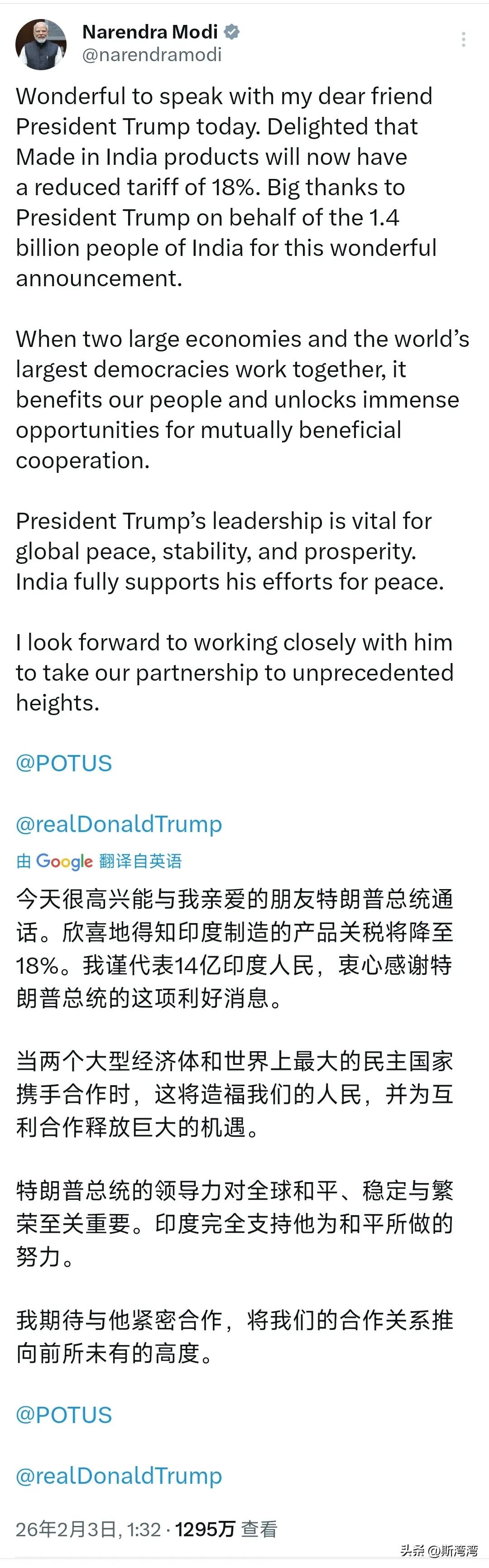 难得一见,莫迪发自肺腑的感谢特朗普! 果然利益是好东西,有了利益,仇人都是好朋友。特朗普曾经无数次贬损印度,辱骂莫迪。但为了利益,莫迪可以毫无顾忌的背刺普京,跪舔特朗普,这就是此次莫迪展现出令人唏嘘的印度! 新锐领航权益升级