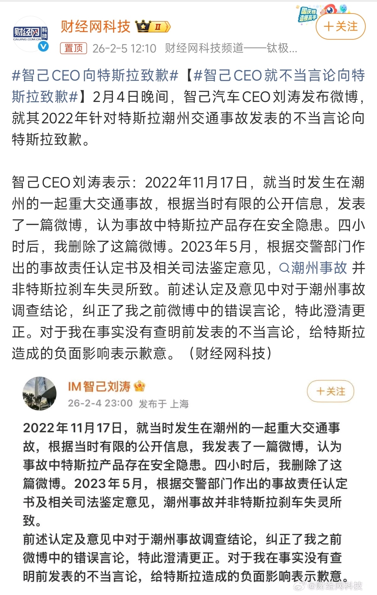 果然,就是了,只不过认证取消了……智己CEO向特斯拉致歉