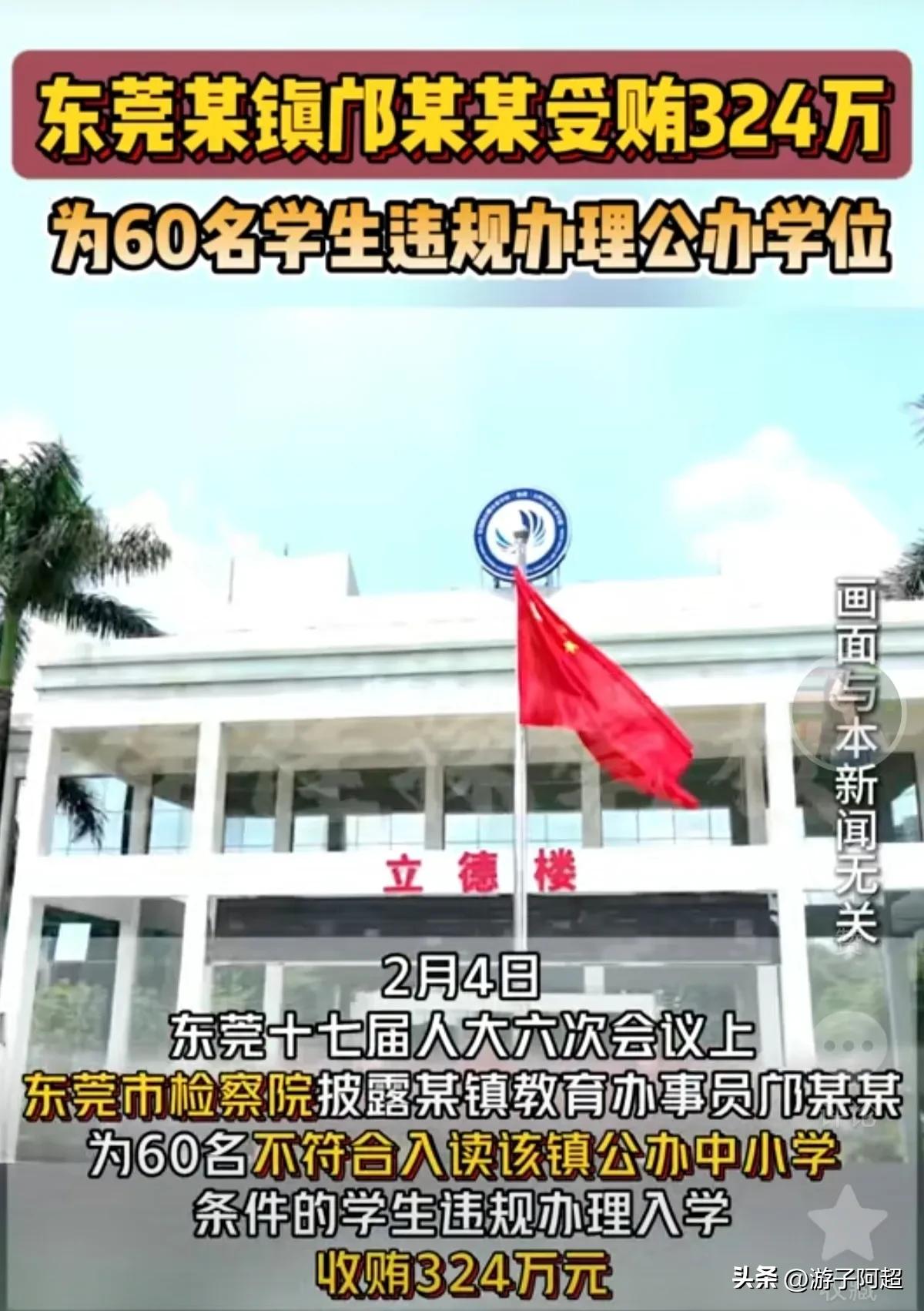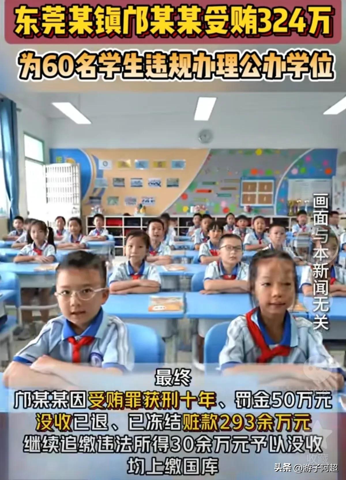 东莞市一名前教育部门公职人员邝某因违规收钱办学,被判处有期徒刑十年。 据东莞市检察院于2月4日通报,邝某曾利用职务便利,为60名不符合条件的学生获取公办学校入学资格,并非法敛财324万元。2023年9月,东莞市纪委已对邝某的严重违法行为启动调查,此案现已成为整治基层腐败的典型范例。 以往,此类与东莞市镇街教育系统人员勾结、违规操作入学资格的现象较为普遍,公开索要费用约为6万元/个学位。然而,近年来监管趋严,此类行为已有所减少。