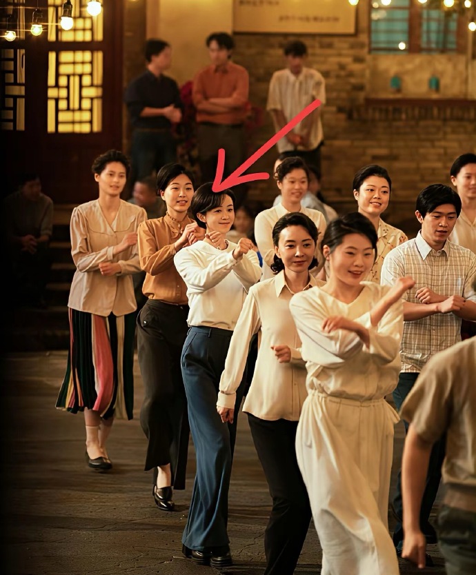 赵丽颖不愧是演偶像剧出身的, 放在人群中一眼出挑。 不过感觉她太美太时尚了,倒不像是那个年代的人,有点儿突出。