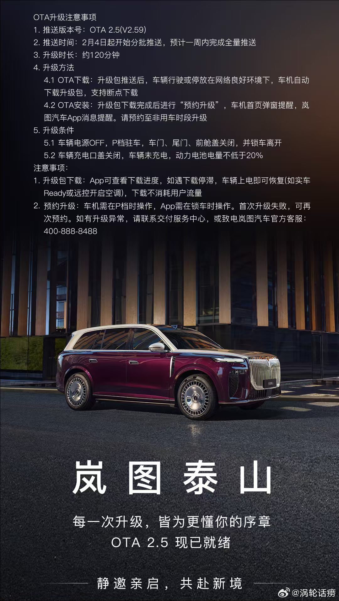 岚图泰山越级进化,所有升级全部启动启动启动!岚图泰山OTA2.5重磅升级,