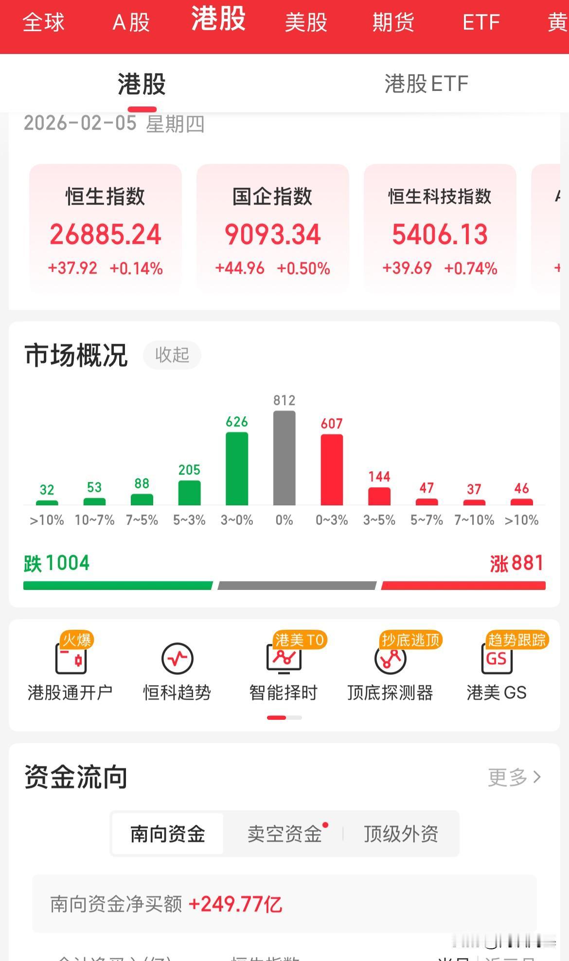 内资疯狂扫货,大买250亿港元,港股探底回升,恒生科技涨幅0.75%,恒生科技时隔5个交易日再度收涨,盘中一度从5400点跌至5260点,午后拉升 5个交易日从高点5900点,连续下挫跌破5300点,探底5267点后,指数回升,盘后恒生指数回升上涨0.12%, 短线或有反弹,还得观察,震荡再震荡吧。