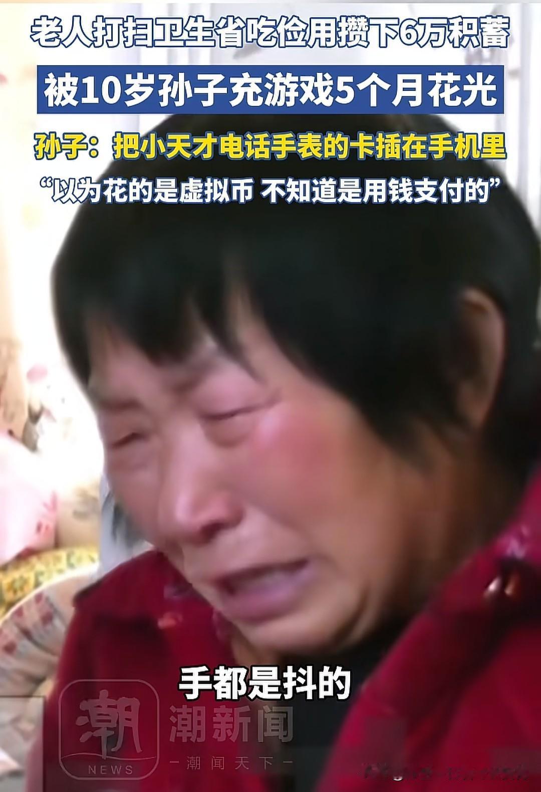 老人省吃俭用攒下6万积蓄,结果被10岁孙子玩游戏败光了,孙子还辩解不知道是用钱充值的,还以为是虚拟币。显然这孙子对钱没概念,不然怎么会懂得把电话手表里的手机卡插智能手机里呢,明显就是为了实名绑定老人的身份信息和银行卡,当时给游戏充钱的时候可精了! 不过这种情况是可以申请退款的,只要能证明充值行为是未成年人未经老人同意操作的,大概率能追回钱款。但值得注意的是,如果存在老人未妥善保管支付密码、允许孩子使用成年人账号注册游戏的情况,可能会被认定存在监护失职,法院或平台可能会判决部分退款。 因为孩子对钱没有概念,玩游戏上瘾就不会考虑那么多,喜欢什么就买什么,尤其是没有了监护人的监管,自己又知道支付密码,是停不下来了。一个孩子能花掉6万,并不是他喜欢的东西要这么多钱,而是卡里只有6万。