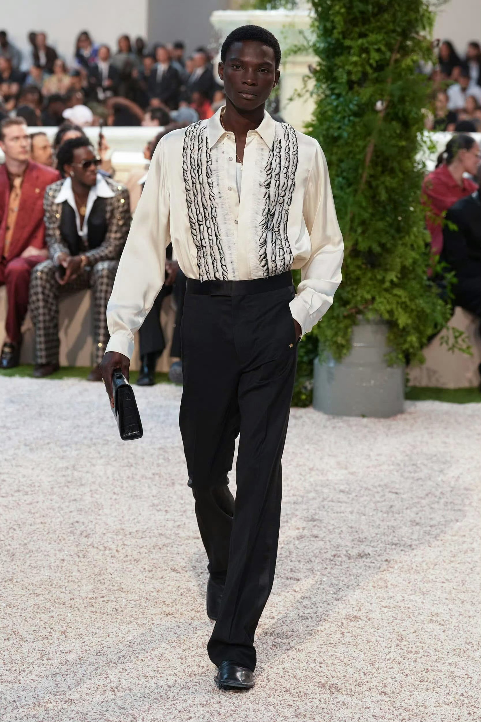 今日微博之夜活动造型 Look,黑色西装外套内搭Amiri 2026春夏系列羽饰衬衫,BVLGARI 珠宝的点缀下,休闲帅气、风度十足的严浩翔闪耀登场✨