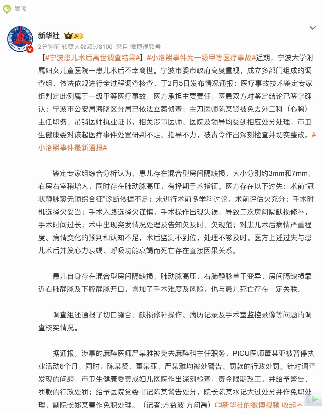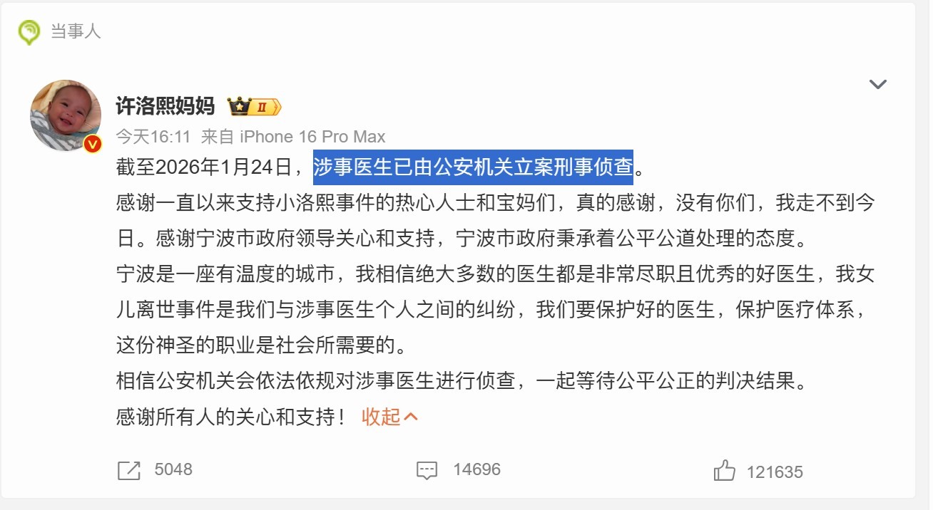 小洛熙事件为一级甲等医疗事故小洛熙妈妈称公安机关已立案侦查 大致了解了下事件,应该是婴儿才5个月大,心脏有点小问题不至于做手术,后面会自己长好,但是主治医生说“1厘米房缺需紧急手术”,结果在手术中造成了肺静脉阻梗等各种并发症,总之应该是场医疗事故吧,非洗地,我想事故里的主治医生们肯定也成了巨大心理阴影,日后还能不能从事这行都难说。