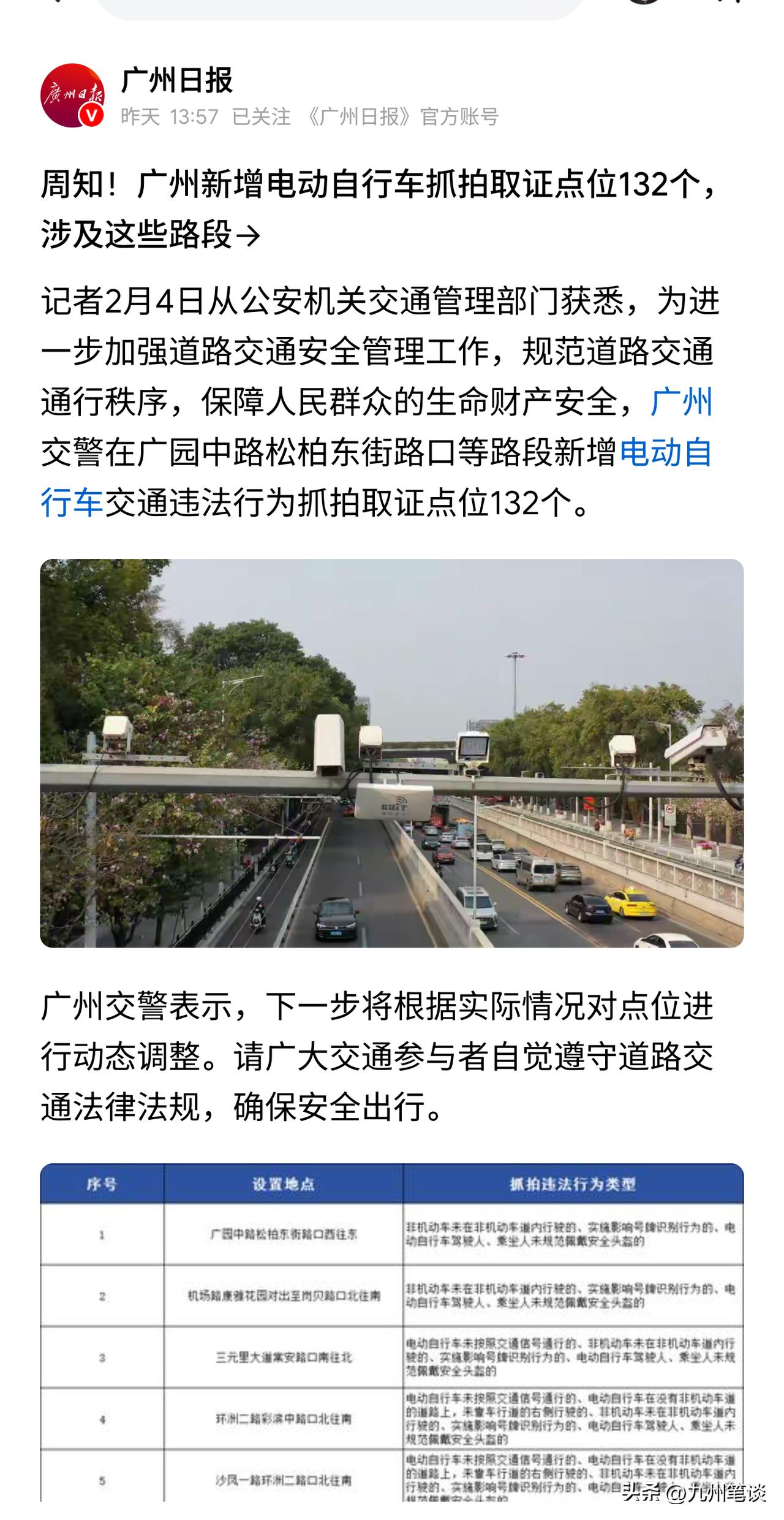 【重磅】广州开电鸡更要注意了!广州新增一批电鸡违法抓拍设备,总数已经超千个了。其中海珠区西部老城区同福东路与同庆路口西往东方向新增一个,也就是解放桥南与同福东路交界处。 此处实际上是一个十字路口,只是同庆路南侧很窄,看起来像个丁字路口。 这种路口更容易出现闯红灯的情况,因为右侧道路窄,少人行。所以大家默认就是直接直行了,不管是否是红灯。实际上,南北向的人行横道上有行人的,此时人行横道是绿灯,电鸡和单车都需要停车等待,礼让行人。 机动车道是西往东的单行道,非机动车道是双向的。 其中西往东方向,非机动车基本上不会理信号灯,最近西往东方向停止线前面路边也加装了非机动车专用信号灯,更加明确了。 不用和机动车看同一个信号灯了,也就不存在没有非机动车专用信号灯,看不懂信号灯的情况了。 新增的抓拍设备功能更强大,除了抓拍闯红灯外,走机动车道,还能分辨出来遮挡号牌,驾乘人员不戴头盔等,都可以抓拍。 所以,老老实实戴头盔,遵守信号灯通行,就不会有事了。 目前,海珠区西部有两个抓拍点,第一个是宝岗大道中北行宝岗体育场路口,如图9。 最开始时还没有右侧的非机动车信号灯,只有道路中间的机动车信号灯。笔谈就因此闯了红灯,当时是20蚊,但因找不到行驶证了,又补办行驶证加上邮寄费用,损失惨重[泪奔]。 第二个点位就是现在同福东路新增的这个了。 严格遵守交通规则,注意观察,按照信号灯的指示通行,戴好头盔,不走机动车道,不存在侥幸心理,自然安全无事,不用担心荷包受损了。