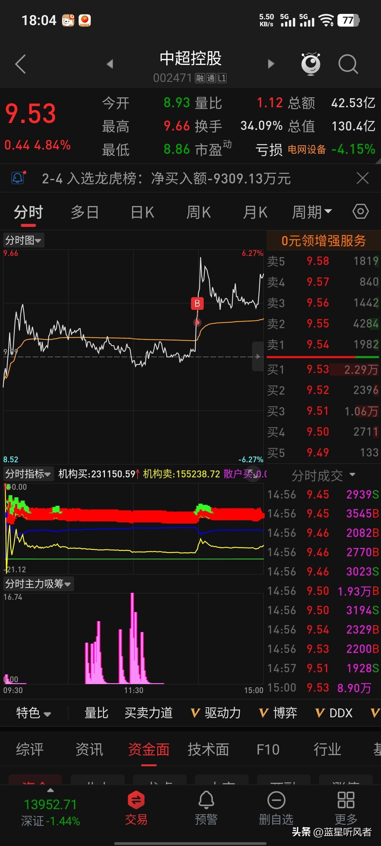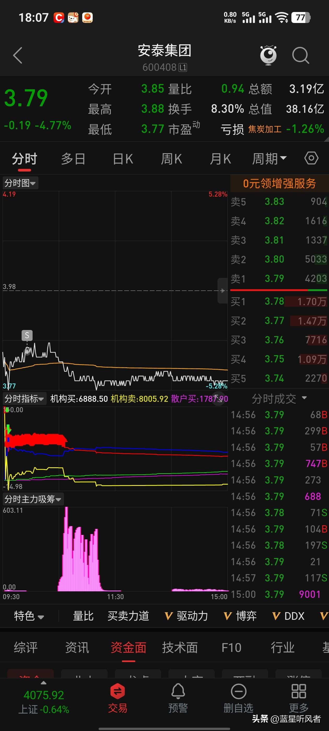 跟风进安泰集团,今天吃了闷热面。亏损50块[笑哭],出了。又进入中超控股。冲高回落,略微盈利。 今天还买入三特索道(✿^‿^)和海澜之家,一个目前亏损,一个也是略微盈利。今天林业,餐饮业,消费和影视发力。板块轮动太快了。游资机构横扫平潭发展。(仅作为个人记录,不作为投资依据)散户炒股日记 记录炒股的日子 A股市场