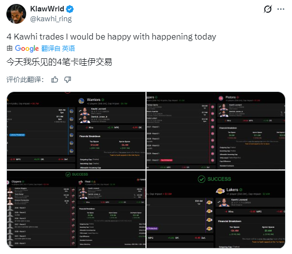 一个伦纳德自媒体账号写的,他希望在今天交易截止日看到的四笔伦纳德的交易,咋说呢,就,你粉的很纯粹。PS:这个账号1.5万粉NBA交易截止日