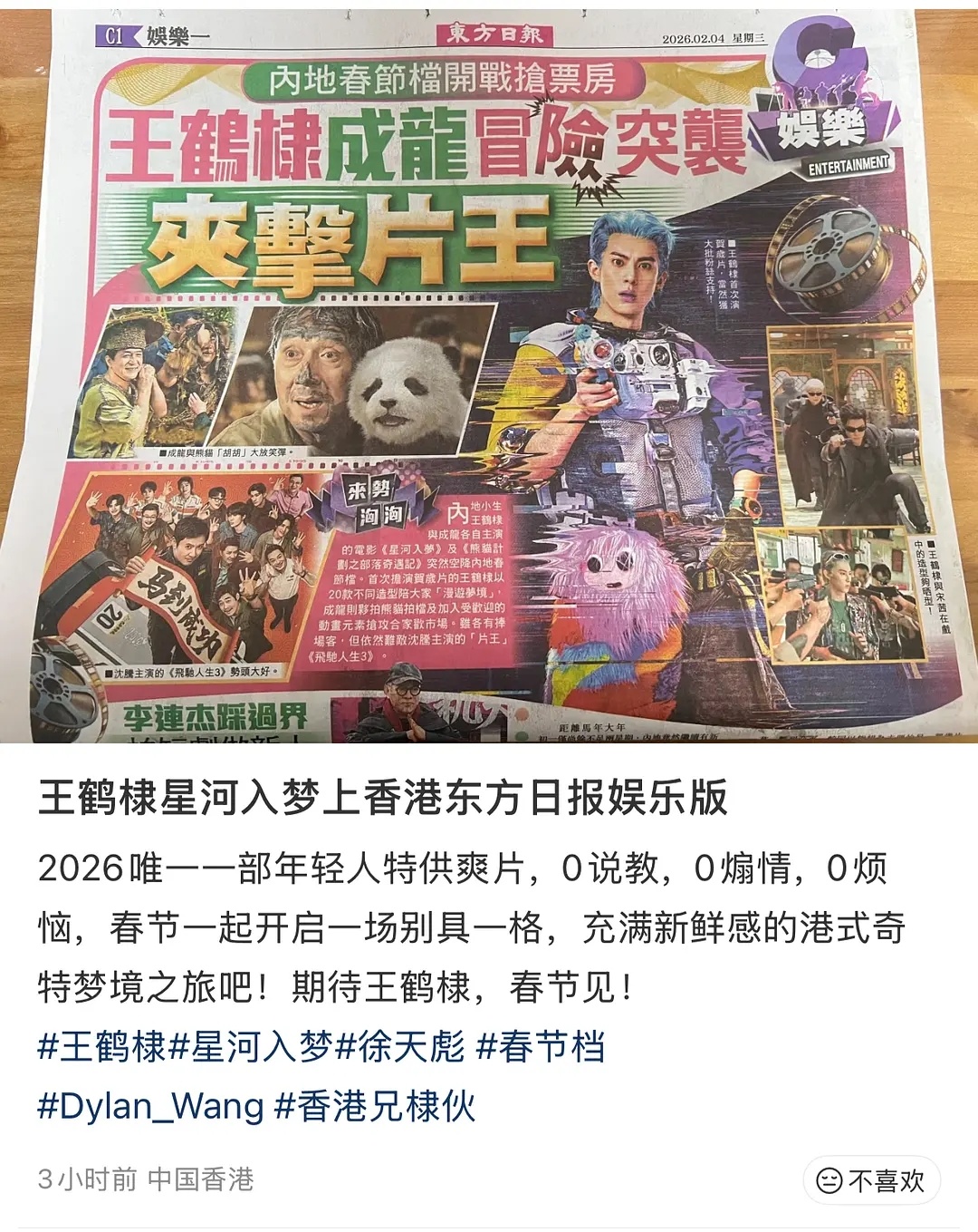 王鹤棣上香港头条了