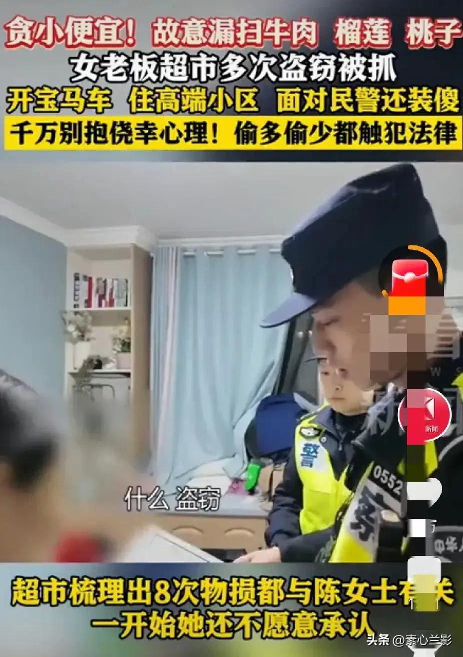 上海宝马女老板超市“顺”几百块商品被抓!住豪宅开豪车,却为蝇头小利身败名裂,全家人社死街头! (作者申明:素材取于网络) 在上海这座光鲜亮丽的国际大都市,总有人表面风光无限,背地里却干着令人瞠目结舌的荒唐事。近日,一则关于“奉贤宝马女老板超市盗窃”的新闻引爆全网,迅速登上热搜榜,引发全民热议——这位陈女士,开着宝马、住着高端小区,却在超市自助结账区多次故意漏扫高价商品,累计偷盗金额达数百元,最终被警方立案调查。一时间,她从“成功女性”的神坛跌落,沦为邻里茶余饭后的笑柄,连带整个家庭都陷入“社死”漩涡。 事情发生在2月3日,上海奉贤某大型连锁超市。监控画面清晰记录下陈女士多次在自助收银台前“动手脚”的全过程:她将价格不菲的进口红酒、高档巧克力、有机牛肉等商品悄悄放入购物袋,却只扫描几件低价日用品便匆匆离开。起初,超市工作人员以为是操作失误,但连续多日的异常行为引起了警觉。经过调取监控、比对交易记录,确认其存在系统性、有预谋的盗窃行为后,超市果断报警。 警方介入后,面对铁证如山的视频和消费数据,陈女士竟一度矢口否认,坚称是“机器故障”或“自己没注意”。然而,在确凿证据面前,她的狡辩显得苍白无力。最终,因涉嫌多次盗窃,涉案金额虽未达刑事立案标准(通常需1000元以上),但因其行为具有主观恶意且屡教不改,警方仍依法予以治安处罚并立案处理。更令人心寒的是,这并非她第一次“占便宜”——据知情邻居透露,此前她就曾因在社区团购中少付钱、在停车场逃缴费用等小事被多人私下议论。 一个开着宝马、住着均价超6万元/㎡高端小区的成功女老板,为何要为区区几百块钱铤而走险?这背后折射出的,绝非简单的“贪小便宜”,而是价值观的严重扭曲。在物质丰裕的今天,有些人虽然钱包鼓了,精神却极度贫瘠。他们把“精打细算”异化为“不择手段占便宜”,把“会过日子”误解为“能省则省,哪怕违法”。殊不知,这种行为不仅触碰法律红线,更彻底摧毁了个人信誉与家庭尊严。 更令人唏嘘的是,此事曝光后,陈女士的家人成了最大受害者。邻居们议论纷纷:“平时看她穿名牌、开豪车,还以为多体面,结果连超市的东西都要偷?”“她家孩子还在上重点小学,以后怎么抬头做人?”更有甚者,小区业主群直接炸锅,有人晒出她家单元楼照片,配文“奉贤最丢人的宝马姐就住这儿”。一时间,全家陷入舆论风暴,据说其丈夫已数日未露面,孩子也被暂时接回老家避风头。原本体面的家庭,因一人之失,蒙上难以洗刷的污点。 这起事件之所以迅速引爆网络,正是因为其极具反差感和警示意义。它撕开了“高收入=高素质”的虚假面具,狠狠打脸那些认为“有钱就能为所欲为”的错误认知。事实上,真正的体面,从来不是靠豪车豪宅堆砌,而是源于内心的自律、对规则的敬畏和对他人劳动成果的尊重。几百块钱或许对陈女士而言只是九牛一毛,但她失去的,却是千金难买的尊严与信任。 更值得深思的是,自助结账本是科技便利生活的体现,却被少数人当成“漏洞”钻营。近年来,类似“漏扫盗窃”案件在全国多地频发,作案者不乏白领、教师甚至退休干部。他们往往抱着“没人发现”“金额小不算事”的侥幸心理,殊不知,每一次“顺手牵羊”,都是对社会诚信体系的侵蚀。而一旦东窗事发,代价远不止罚款或拘留——名誉扫地、家庭蒙羞、职场受阻,甚至影响子女前途,这些隐形成本,远超那点蝇头小利。 有网友评论:“她不是缺钱,是缺德。”这句话虽尖锐,却道出了问题的本质。在法治社会,任何违法行为都难逃制裁;在文明社会,任何失信行为都将付出代价。陈女士的案例,堪称一堂代价高昂的“公民道德课”:无论你多么富有、地位多高,若丧失基本的道德底线,终将自食恶果。 如今,事件仍在发酵。有人呼吁超市加强监管,有人建议完善自助结账防作弊机制,更多人则在反思:我们是否也曾因“图方便”“省几块钱”而心存侥幸?或许,真正的“体面生活”,不在于你拥有什么,而在于你坚守什么。 高收入≠高素质,财富不等于品格。愿这起“宝马女老板偷菜”事件,成为一面镜子,照见人性的弱点,也照亮我们前行的底线。毕竟,在这个人人联网、处处留痕的时代,没有谁能在违法边缘全身而退。守住底线,才是最大的体面。保姆盗窃珠宝 女老板贪污
