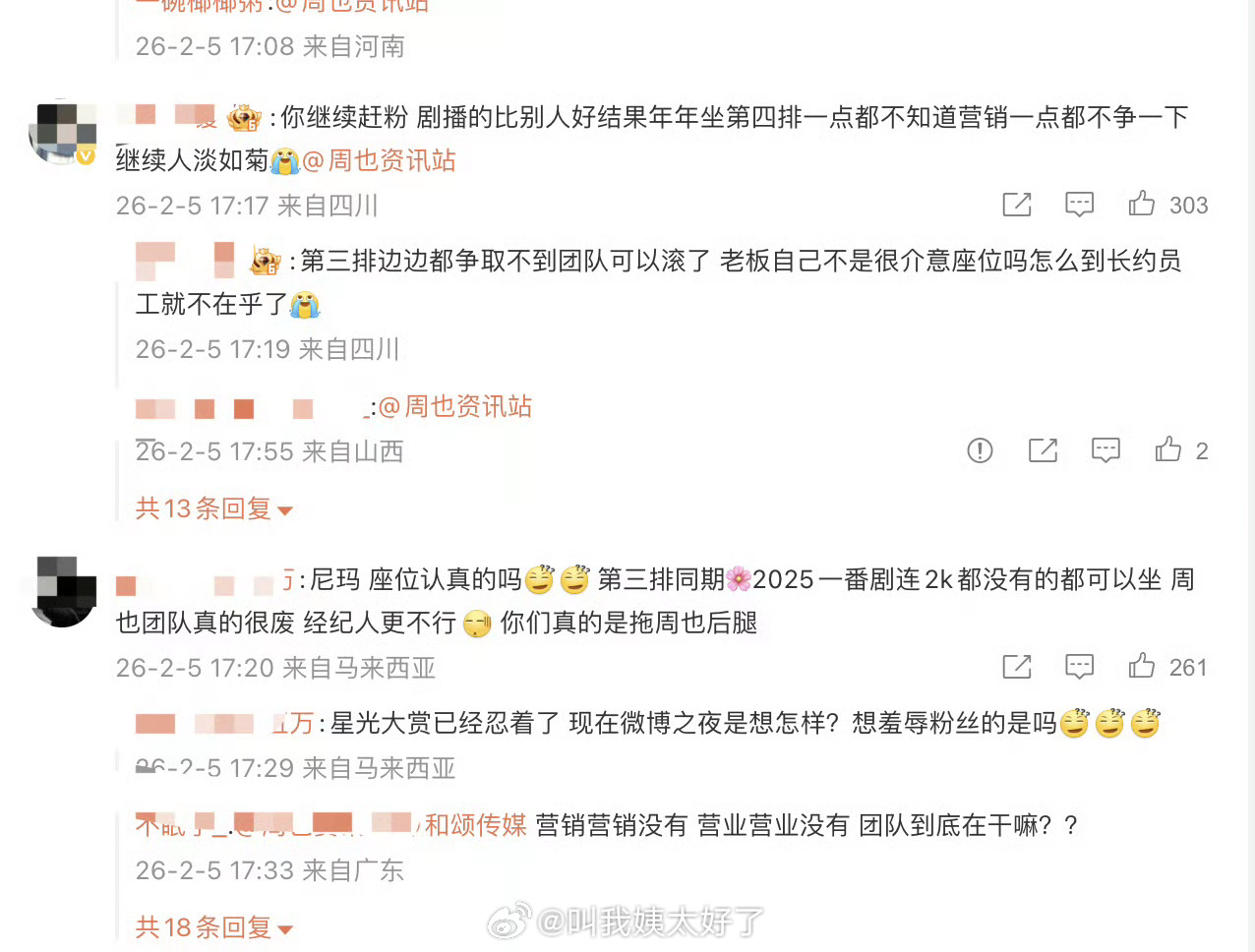 周也粉丝把周也工作室评论区冲了,说做第四排还不如不去坐