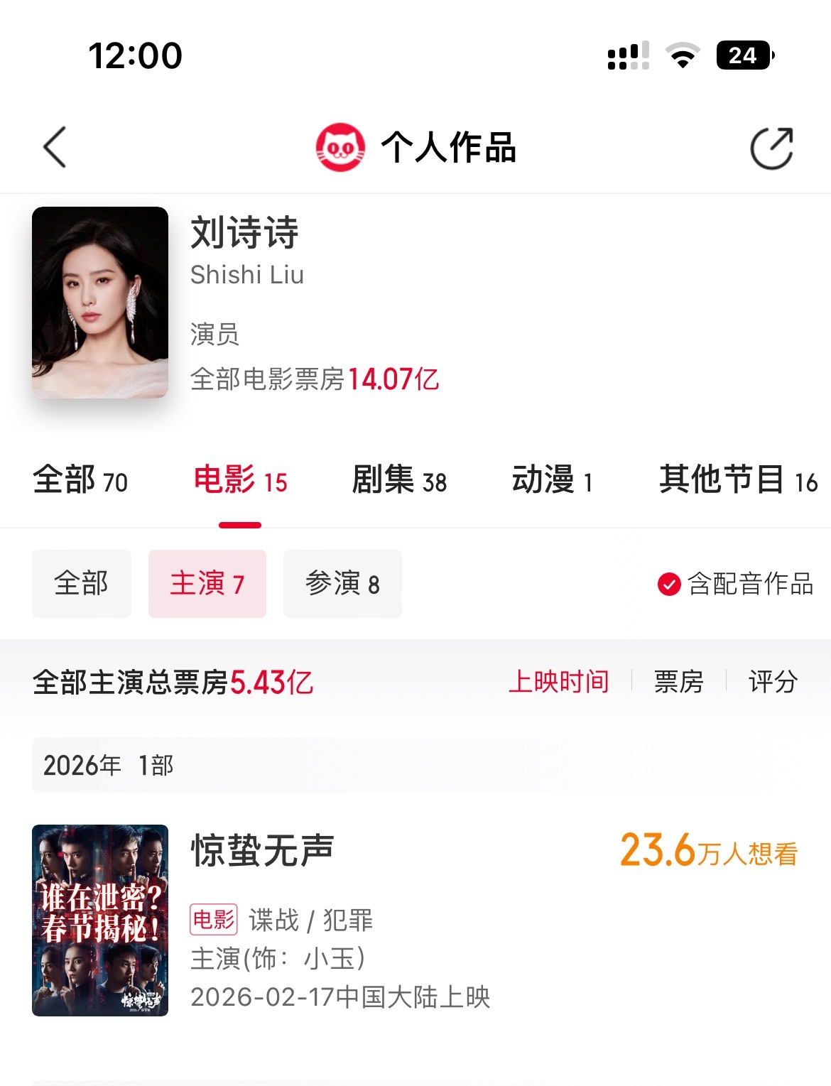 惊蛰无声想看人数破70万 据灯塔专业版,电影《惊蛰无声》淘票票想看人数已突破70万。猫眼想看人数破23w,期待刘诗诗的小玉刘诗诗惊蛰无声