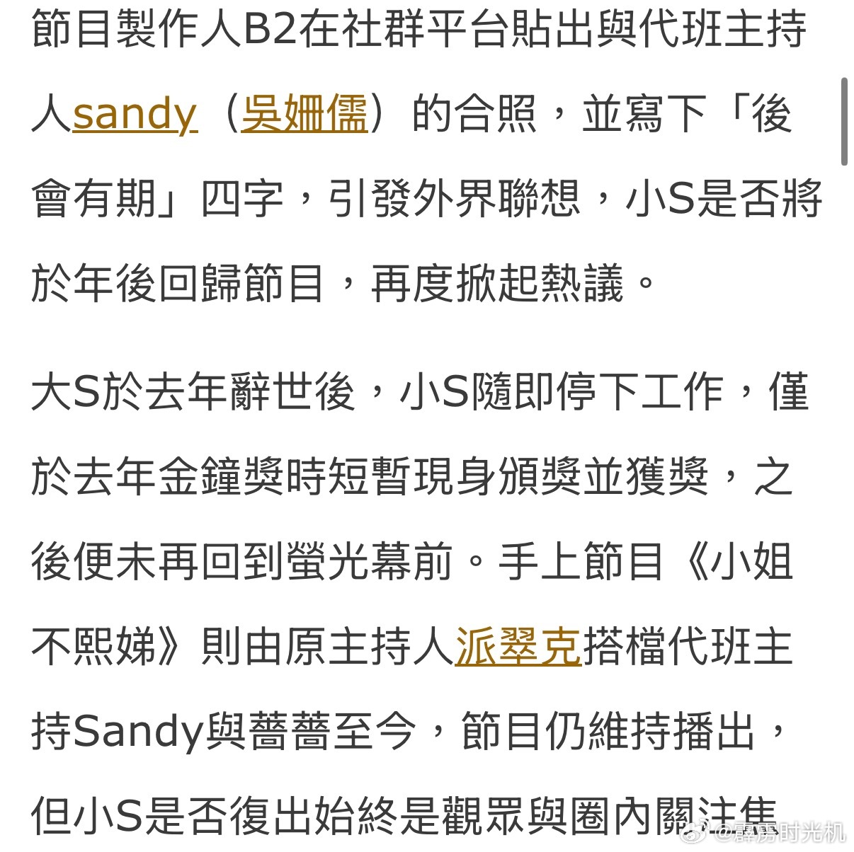 貼文曝光引發網友解讀,是否意味節目將迎來新階段,也猜測小S是否已準備在年後回歸主持。