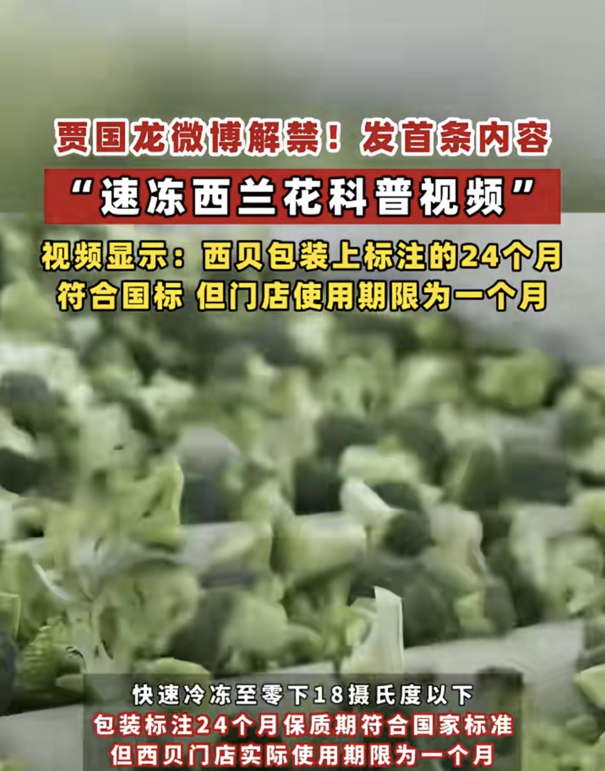 贾老板,账号禁言前:要拉罗永浩对峙,分个高低。解封后:西兰花速冻教程科普,西贝西兰花保质期限为24个月,但西贝一个月内必须用完。 看看,贾老板还是认为顾客对西兰花的误会不浅,非得亲自出面科普一下不可!西贝冷冻食物没问题,冷冻食品本身也很科学,蔬菜经过速冻锁鲜保持原有营养,谁家也是这么做的。 错就错在老板非的要硬刚罗永浩,现在又要科普西贝的西兰花符合国标,冷冻西兰花就是比新鲜的好。 既然是好东西,应该店堂大方明示告知,消费者不都是傻子,好东西会有人识货和喜欢的。看来,还是请公关团队出面比你自己科普更让人接受些。