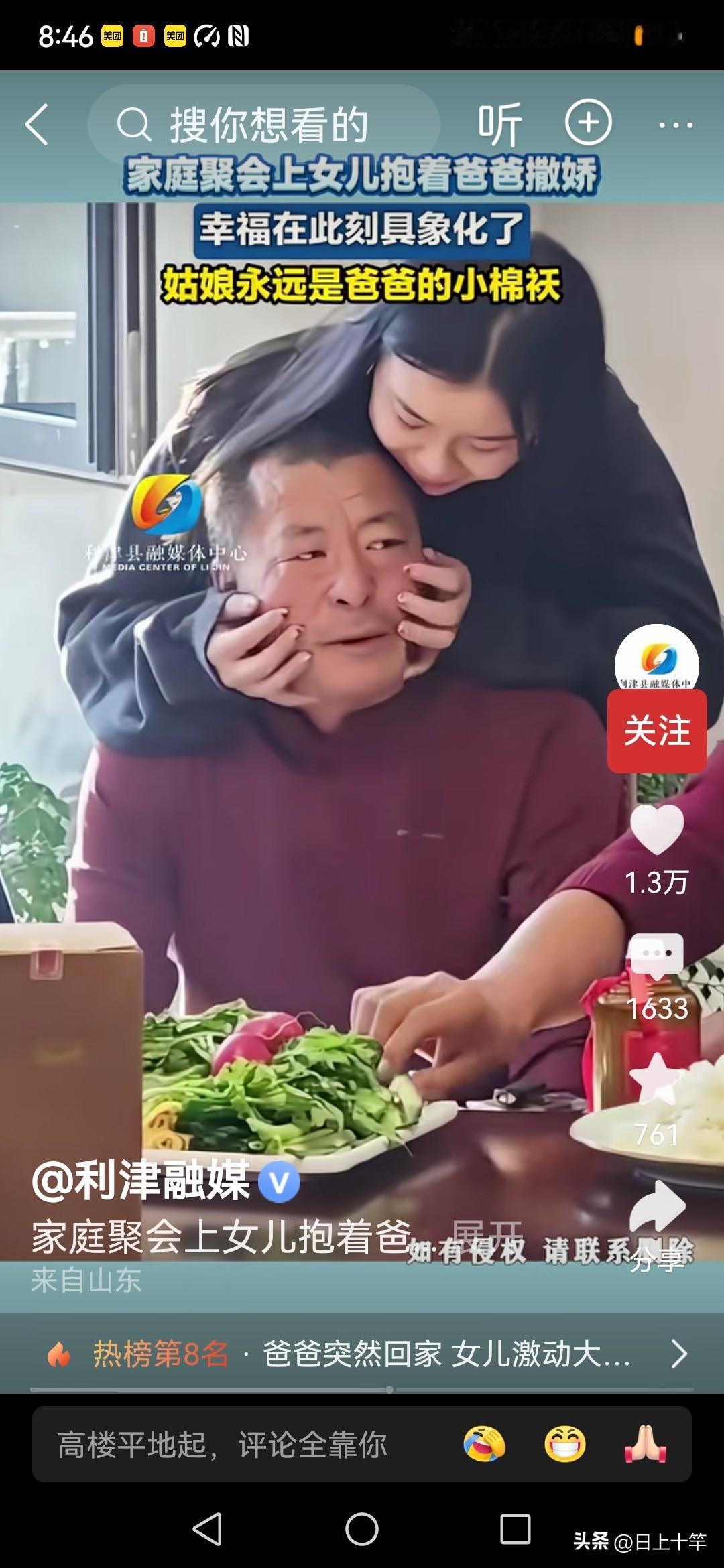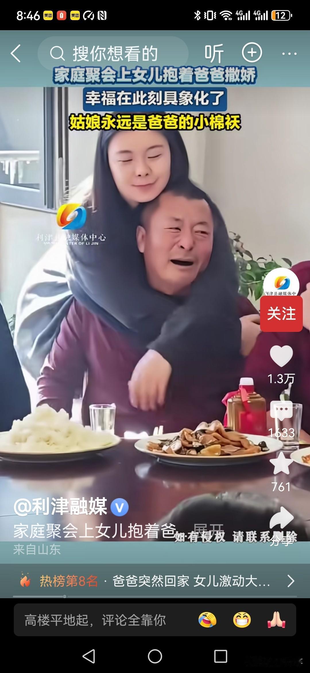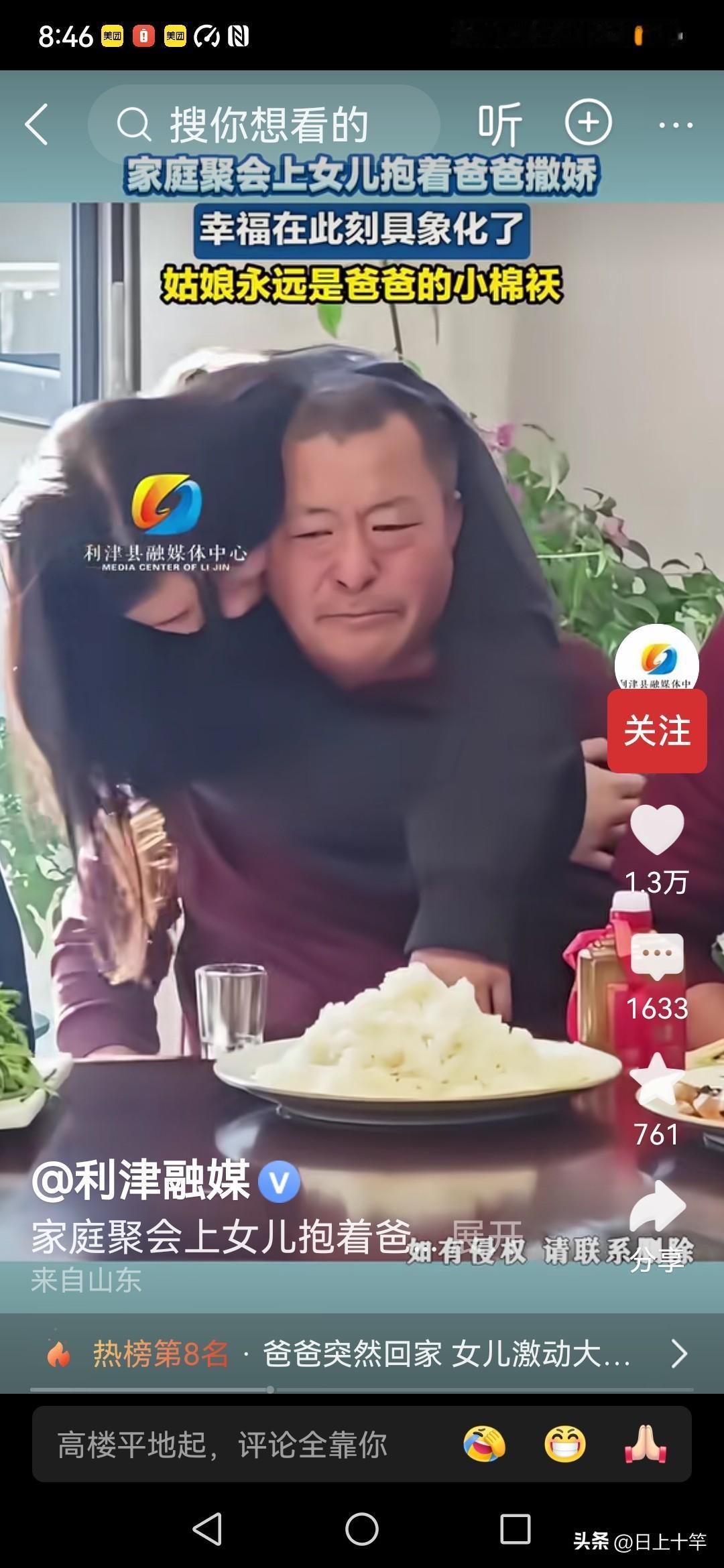 每个男人是不是都希望能有这样一个贴心的小棉袄! 对爸爸的依恋从她对爸爸亲昵的动作就可以看出来! 就算长大了,是个大姑娘了,也是爸爸的暖宝宝,贴心人! 可见父亲对女儿都是很宠爱的! 如果是个男孩就不太可能了, 哪怕是小时候,男孩子也很少会对父亲有这样亲昵的动作! 也难怪,经常会看到网上有父亲嫁女儿的时候都特别伤心! 因为女儿嫁人后,可能就要相夫教子了! 也许就很难再像个未嫁姑娘一样对父亲那么依恋了!