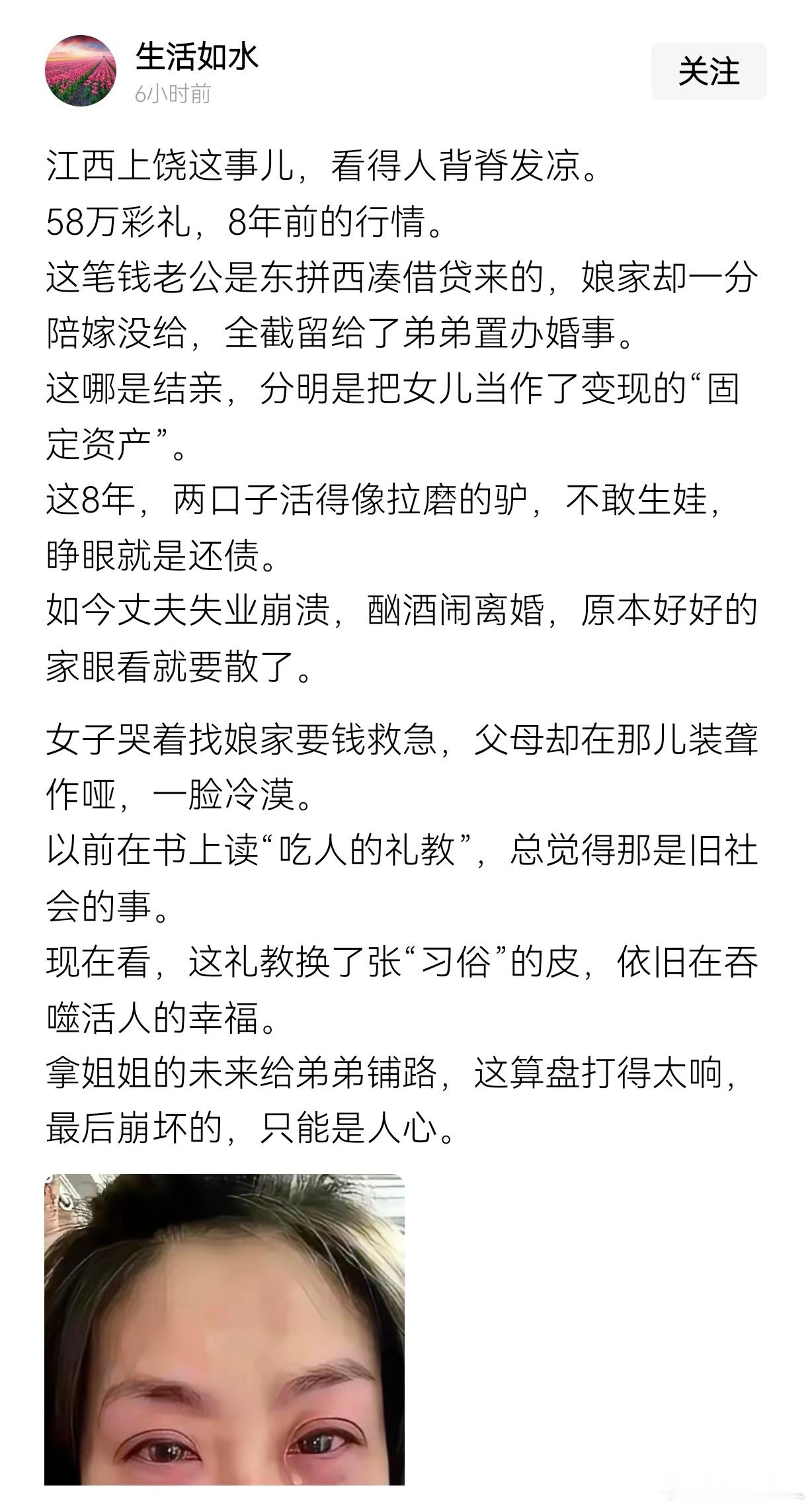 第一,彩礼其实是男方流动资金,抽走了,以后小家还是要去还这个债务的。尤其彩礼给父母更是愚蠢至极。