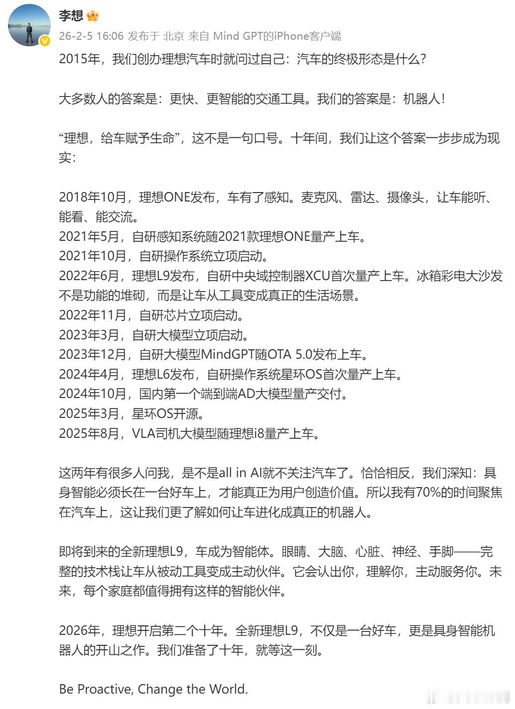 当然有这些其实还不够,车子要真正向AI+机器人方向发展,还需要完全打通各个感知系统、操作系统、芯片、大模型等等关键节点,但恰好这也是理想从One开始到现在,一直在推进布局积累的,AI+机器人形态的新能源车,到底能带来什么不一样的体验,让我们期待一波全新L9。