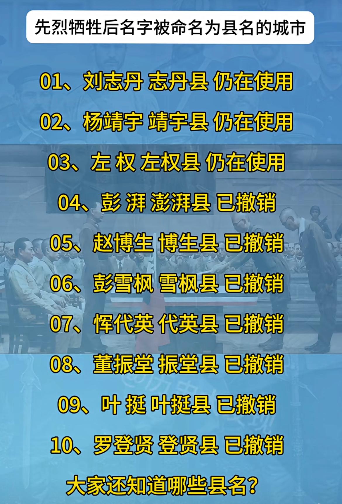 先烈牺牲后名字被命名为县名的城市。 致敬先烈们! 先烈