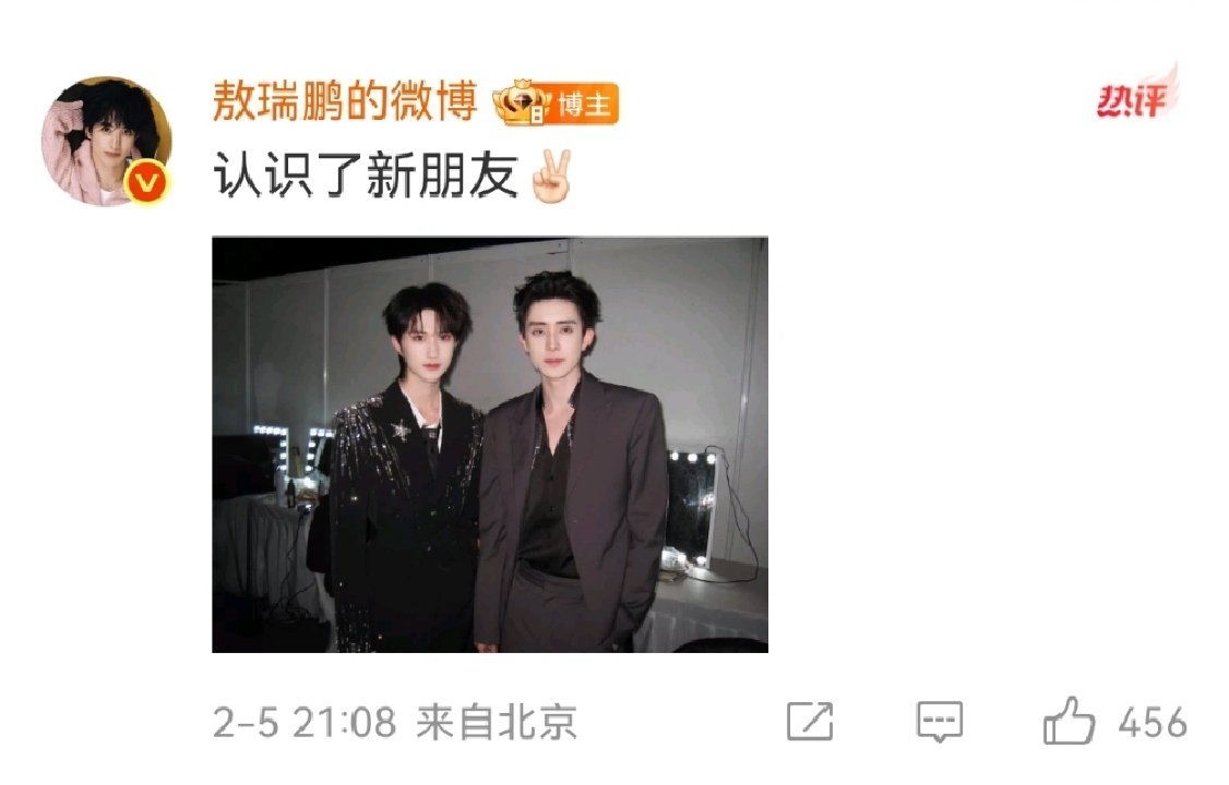 敖瑞鹏认识了新朋友这个敖瑞鹏就在微博之夜很是新朋友,交朋友好啊,多发点合照,我们爱看!敖瑞鹏晒和黄朔合照