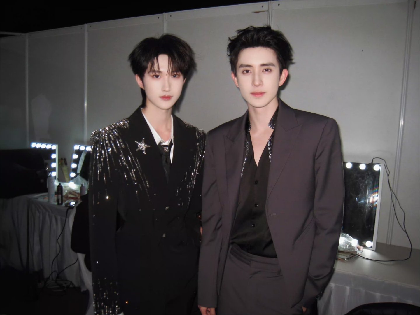 张凌赫宋威龙微博之夜 造型衬衫同款不同色,一个黑色一个酒红色,连腰带也一模一样,