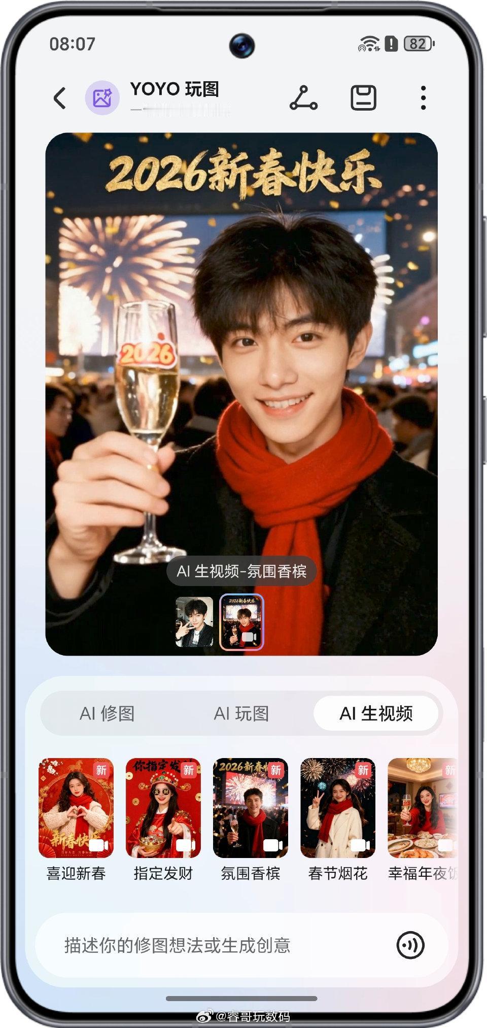 被荣耀YOYO玩图的新功能惊到了!传张自拍就能AI生成春节拜年视频,从民国风到赛博朋克全都有🎬 过年朋友圈C位预定,这AI是懂年味的! YOYO拜年赞爆圈新年荣耀AI到福到MagicOS月月新