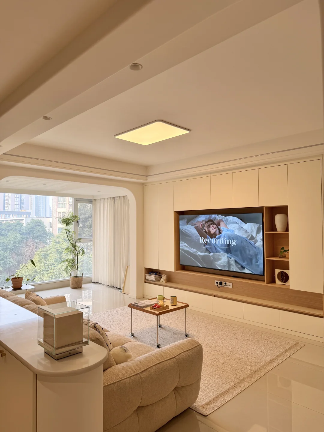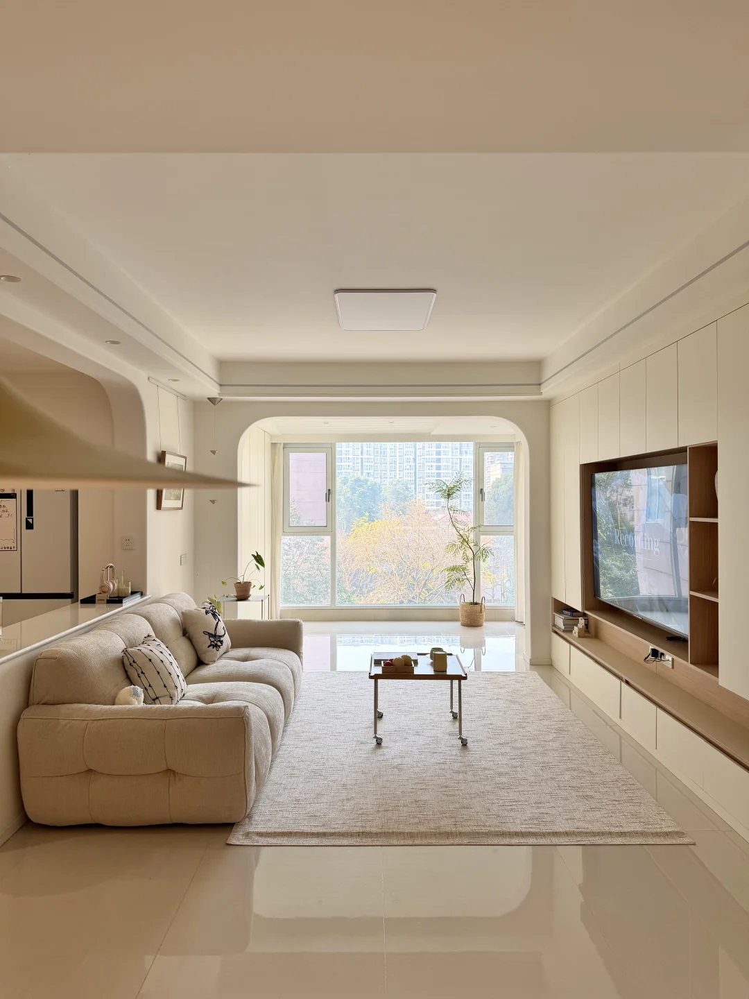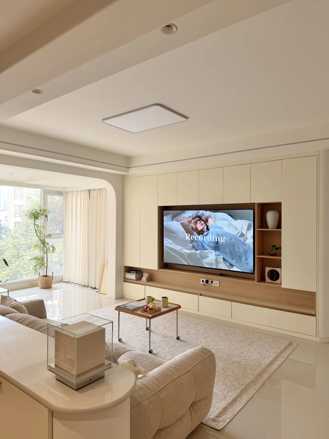 ▪我家别的不多就柜子多,一整面的3米的电视柜,再多东西也可以放下,根据自己的需求增加了餐边柜和阳台柜,搭配浅色的柜门空间颜色一体还显大