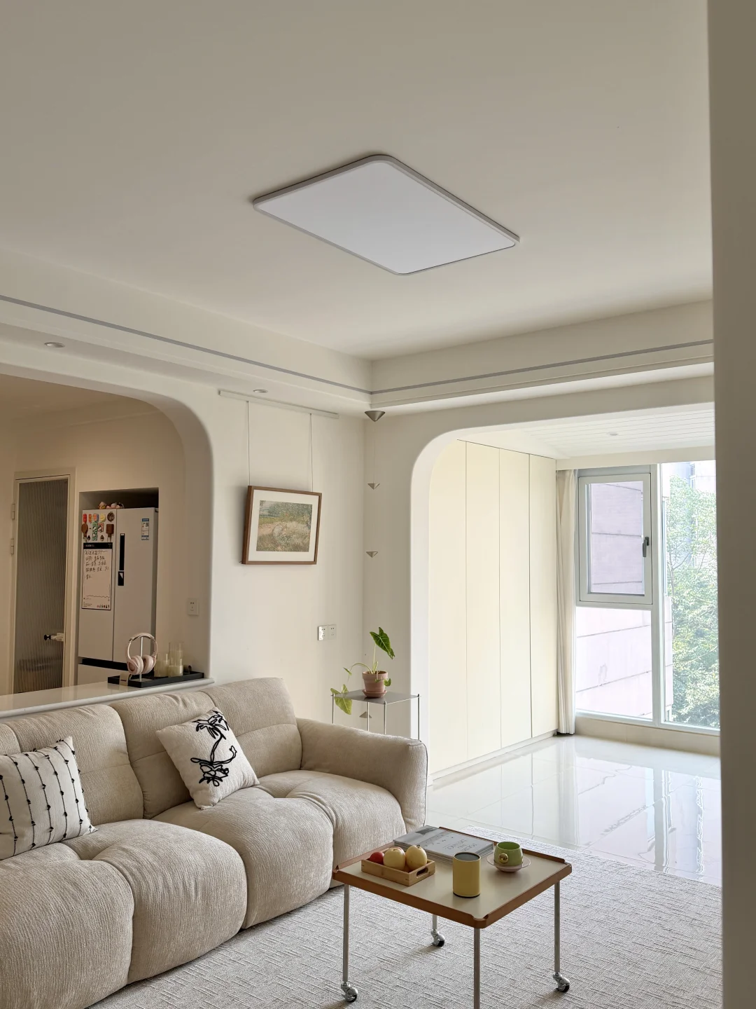 所以跟着朋友一起抄作业给家里换了灯将家滴星耀超薄吸顶灯,1.6cm的超薄灯体贴顶安装,颜值在线的同时,把家里的视觉上空间拉大了一截,换上后整个家感觉亮了一个度嘻嘻