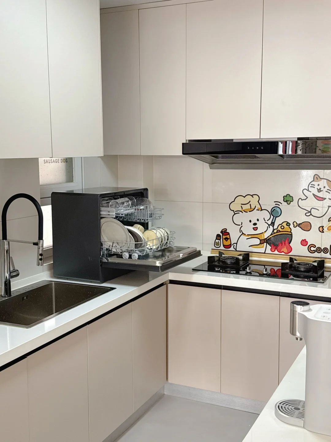 由于我家厨房空间受限制,没有提前预留洗碗机的位置,没法嵌入大洗碗机,我平时又真的很懒,完全不想洗碗。有一次去朋友家聚餐,看见了他家的厨房水槽旁就摆了一个洗碗机。我回到家也开始在网上做攻略看我家的情况适合买什么样的