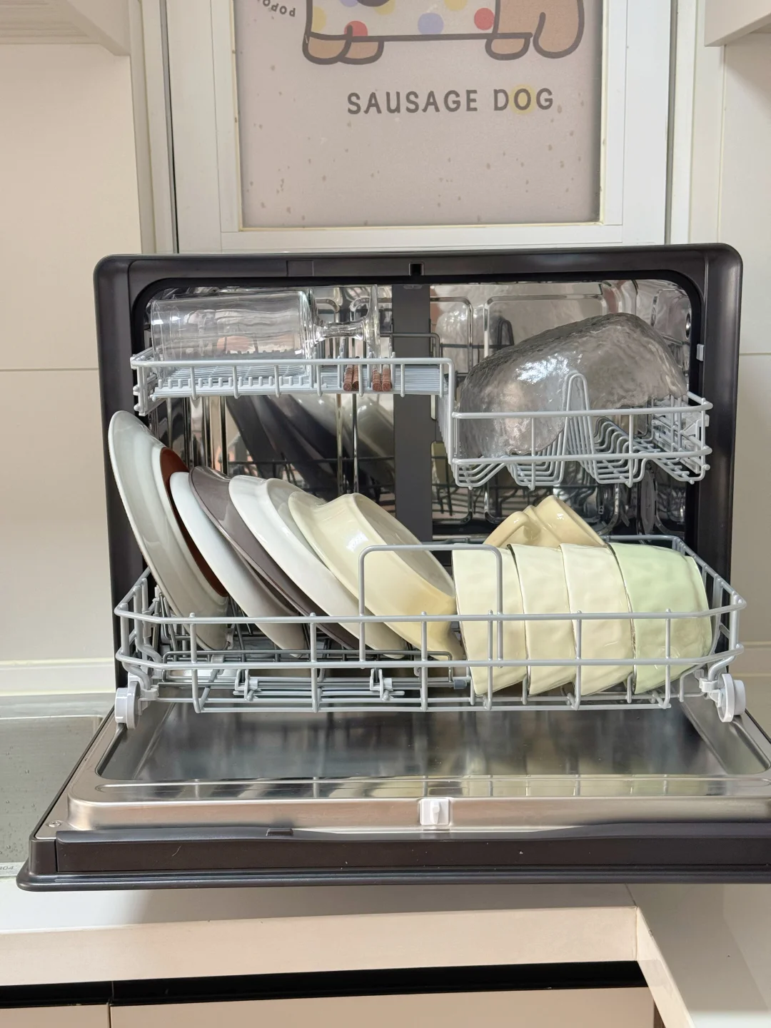 用了一个月的洗碗机,我家一般时候是我一个人住,但每周周末父母和朋友会过来,四个人的餐具放进去刚刚好,什么盘子、碗、杯子啥的都能一起洗,洗的还算蛮干净的…