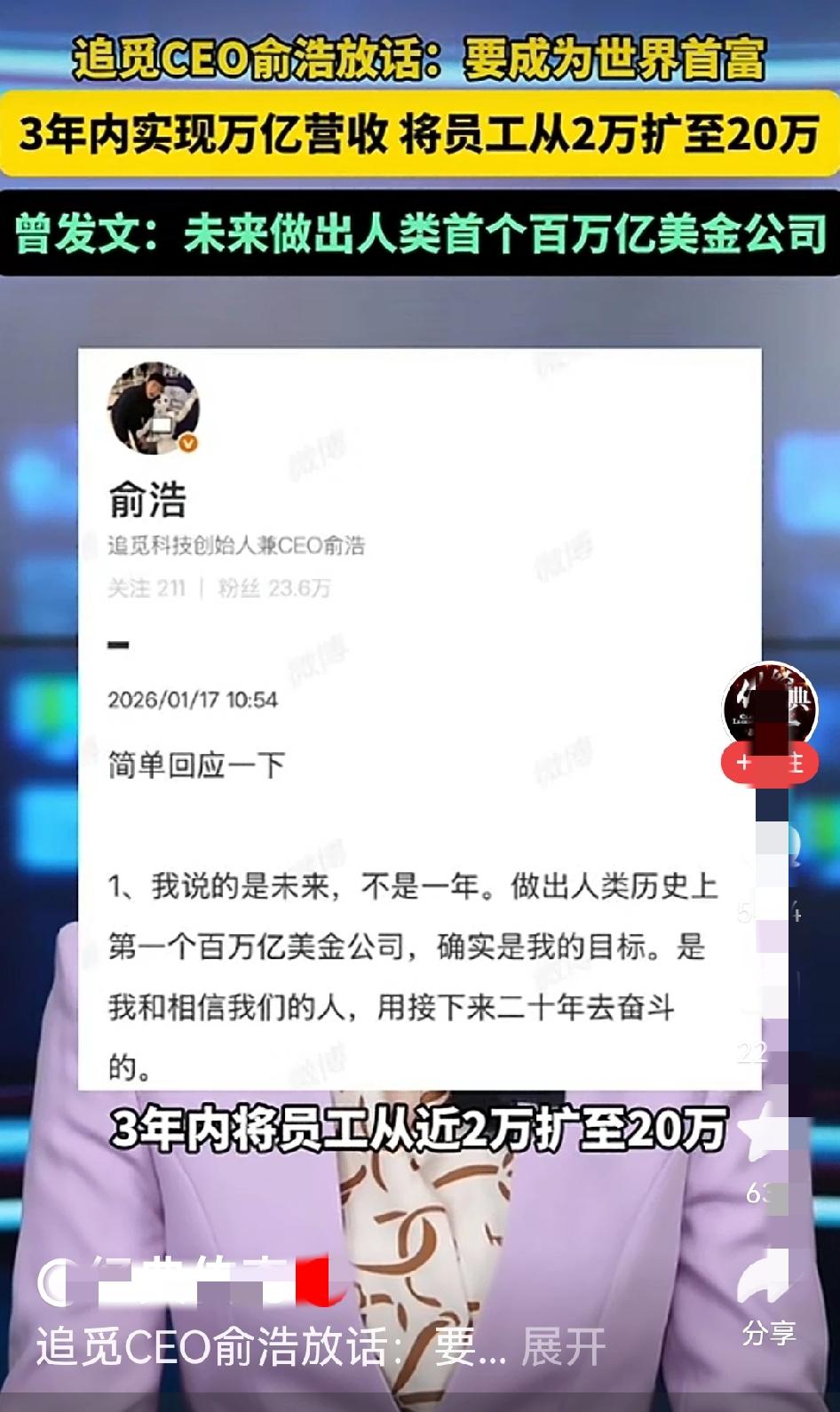俞浩确实有两把刷子,收购的嘉美都快翻十倍了,停牌以后继续高调涨停。冲这一点,他说三年要把员工从2万增加到20万,营收破万亿,真的有可能实现。毕竟一个嘉美,让他快挣了300亿。17年才成立的追觅,25年宣布造车,而且已经落实在实处,看看小米花费了多久,这太不可思议了,说明追觅的技术和执行力是相当强大的,所以俞浩的宣言超越马斯克未必不能实现!中国需要这样的年轻人!