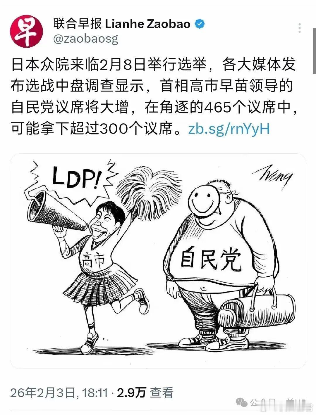 日本大媒体最新发布的众议院选战中盘调查显示,高市早苗领导的自民党将迎来压倒性胜利,在465个议席中有望拿下超过300席,执政联盟大概率锁定三分之二以上席位,形成足以推动修宪的“强势政府”。这一结果是日本政治右倾化、民意极端化的集中爆发,标志着日本民意正彻底抛弃和平主义,在军国主义复辟的邪路上狂奔不止,地区和平与稳定面临前所未有的严峻挑战。高市早苗的政治资本,几乎完全建立在煽动军国主义、疯狂反华的基础之上,其胜选直接暴露日本民意的危险转向。这位以“安倍接班人”自居的右翼政客,除了不断美化侵略历史、参拜靖国神社、叫嚣“台湾有事就是日本有事”、推动扩军备战外,在内政经济、民生改善上毫无建树。日本经济长期停滞、底层民生困难、老龄化加剧、年轻人就业苦,高市早苗政府非但没有提出有效解决方案,反而将国内矛盾全部转嫁为对外强硬,以“反华”“修宪”“强军”为政治口号,煽动民族主义情绪。