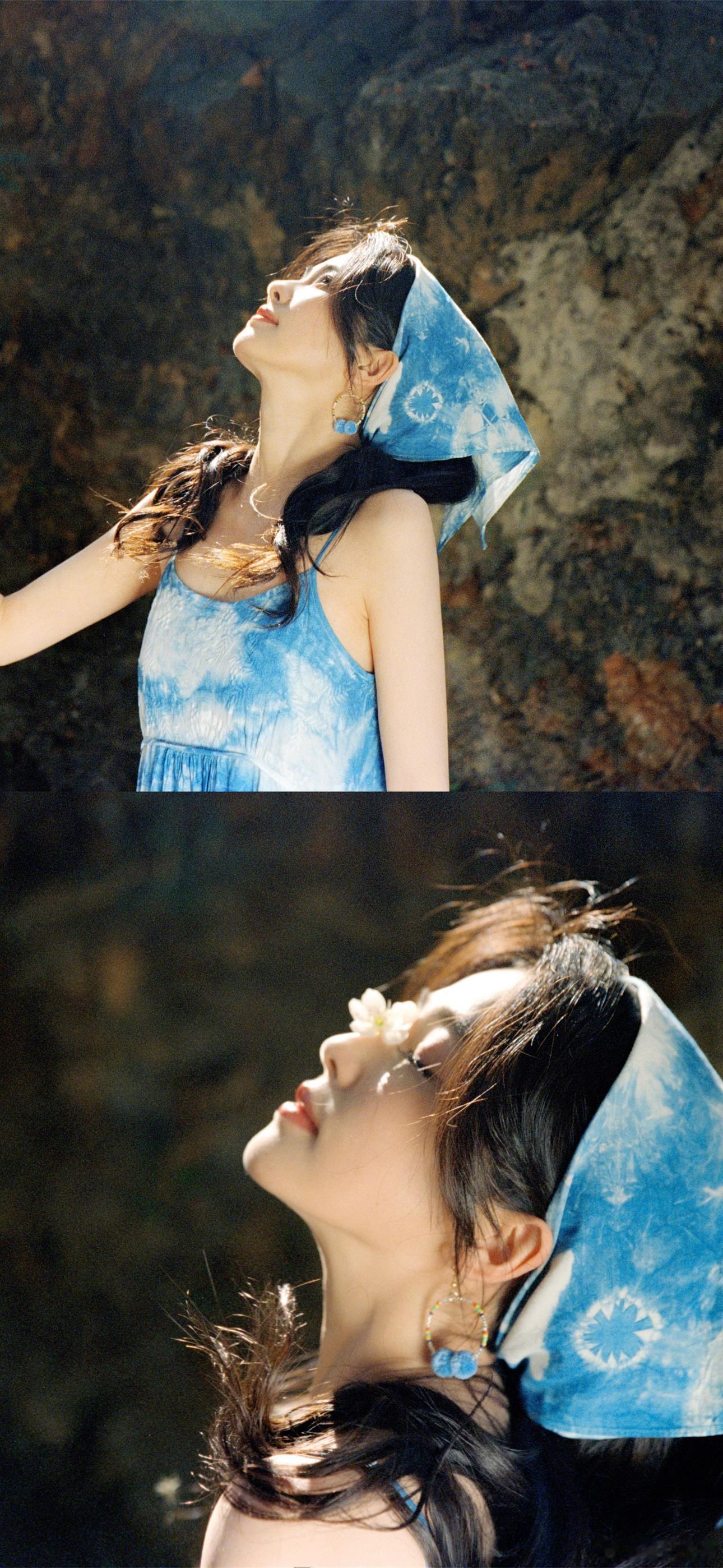 孙允珠,淡蓝色吊带长裙完美展现了她的优雅气质和身材优势。