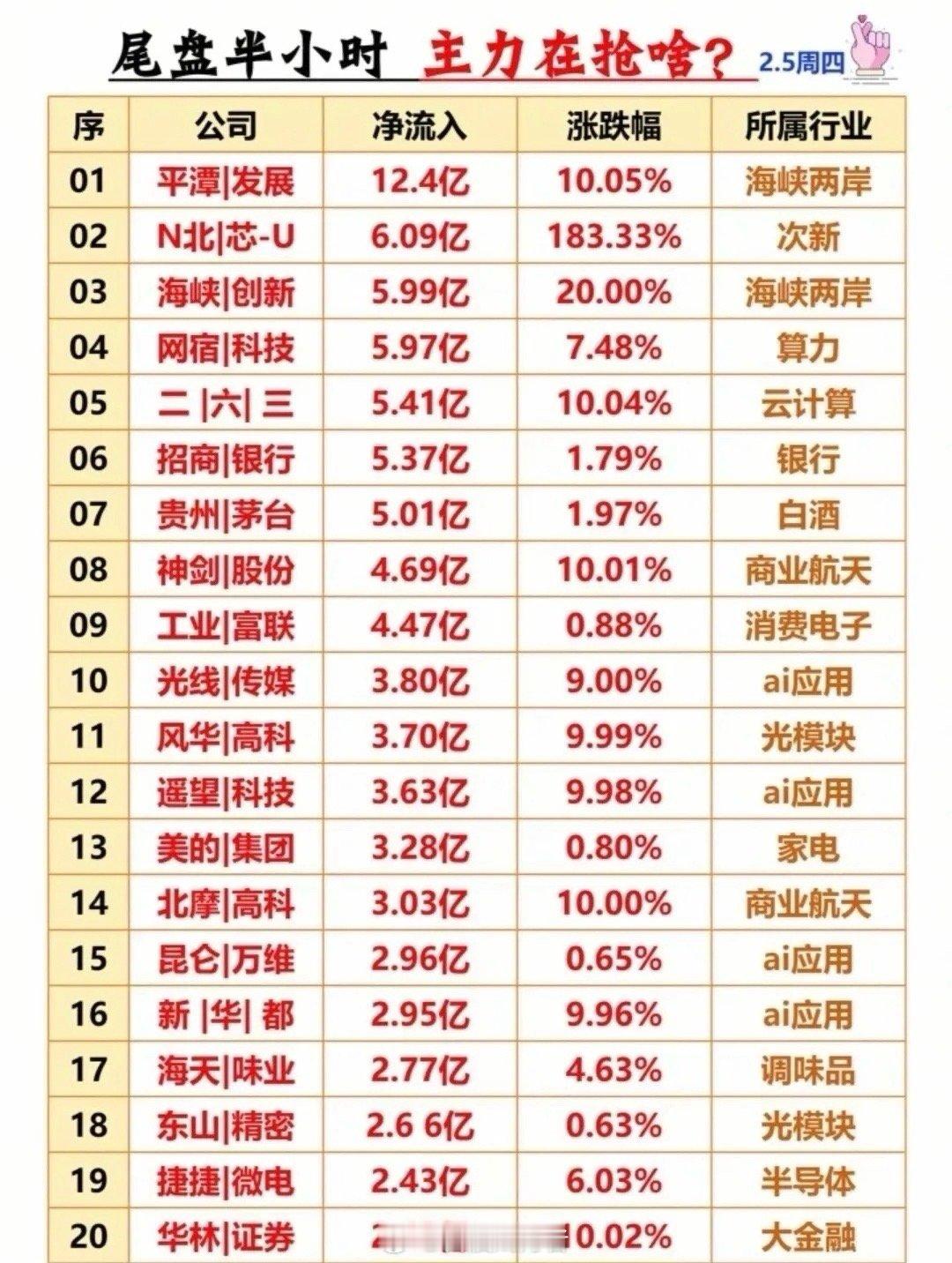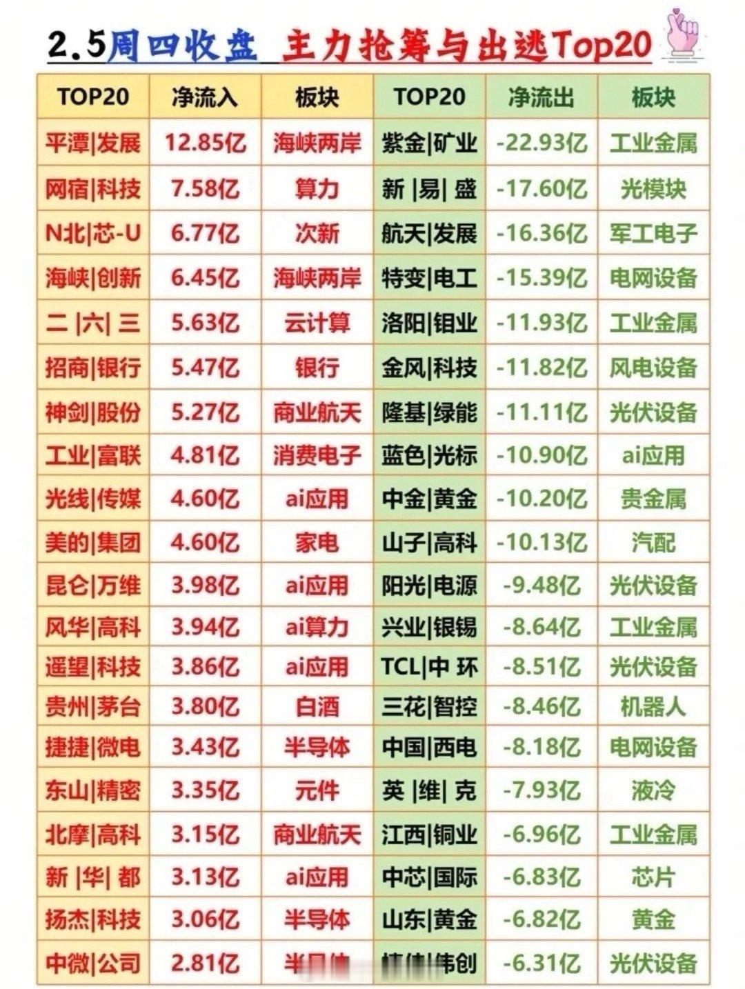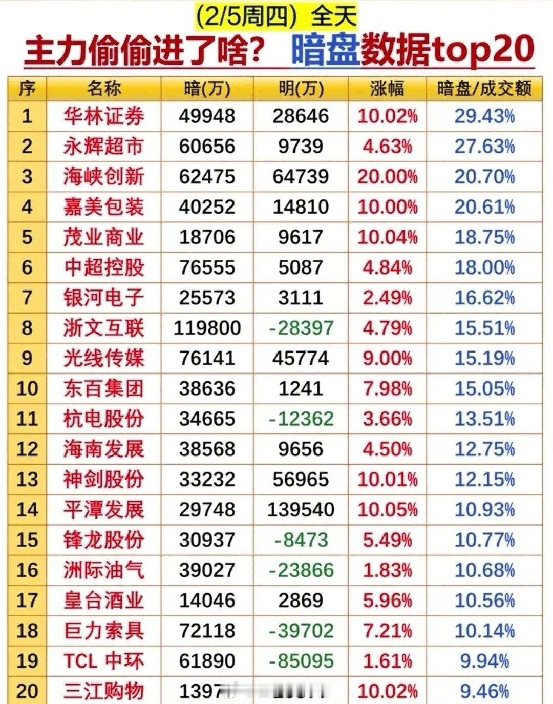 2月5日周四收盘后,主力、游资及暗盘资金动向浮出水面: