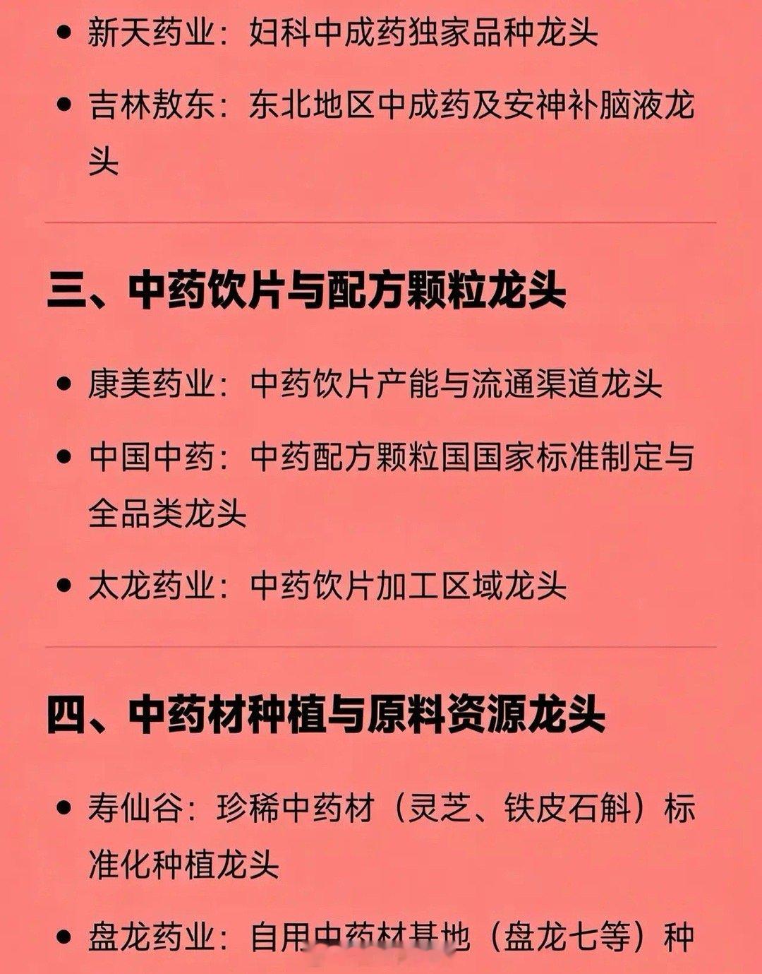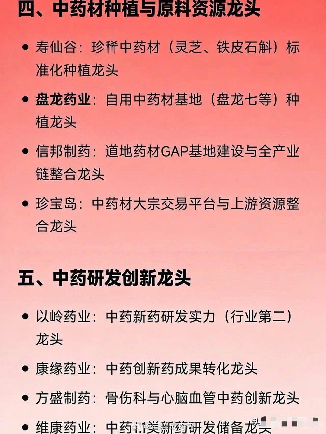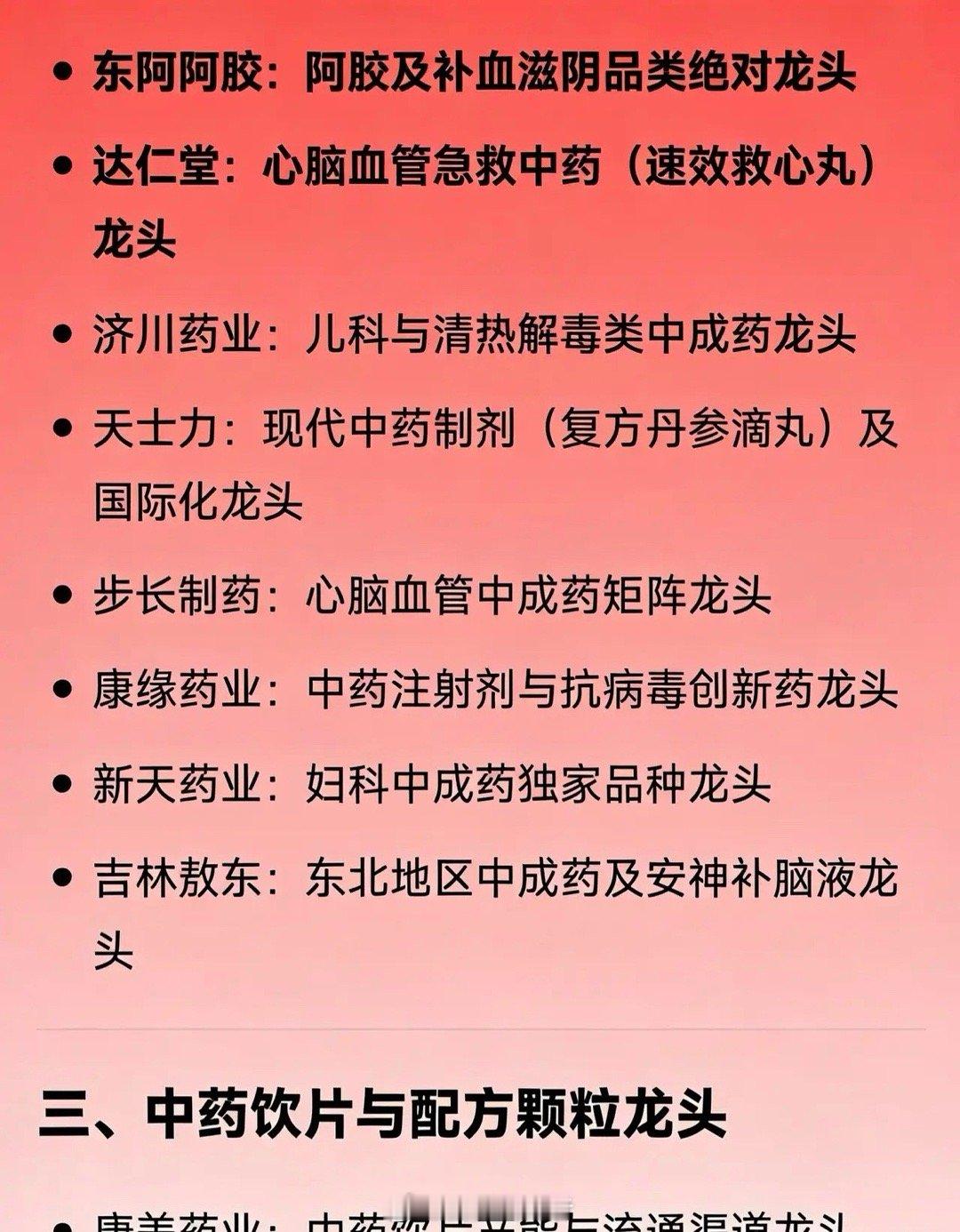• 同仁堂:百年老字号,依托经典名方体系,是中成药领域的标杆性企业。