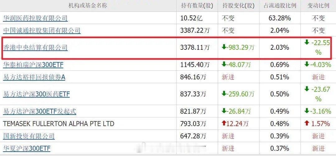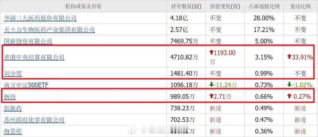 第四家天士力,隶属华润三九旗下,是中国医药工业百强企业,复方丹参滴丸斩获国家级制造业单项冠军,市盈率17倍,毛利率66%,净利率15%。北向资金加仓1193万股至4710万股,位列第四大流通股东;牛散刘少鸾重仓1481万股,杨伟持仓989万股,均跻身前十流通股东。